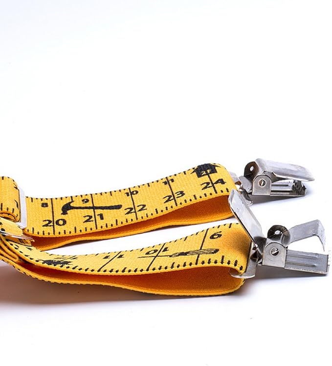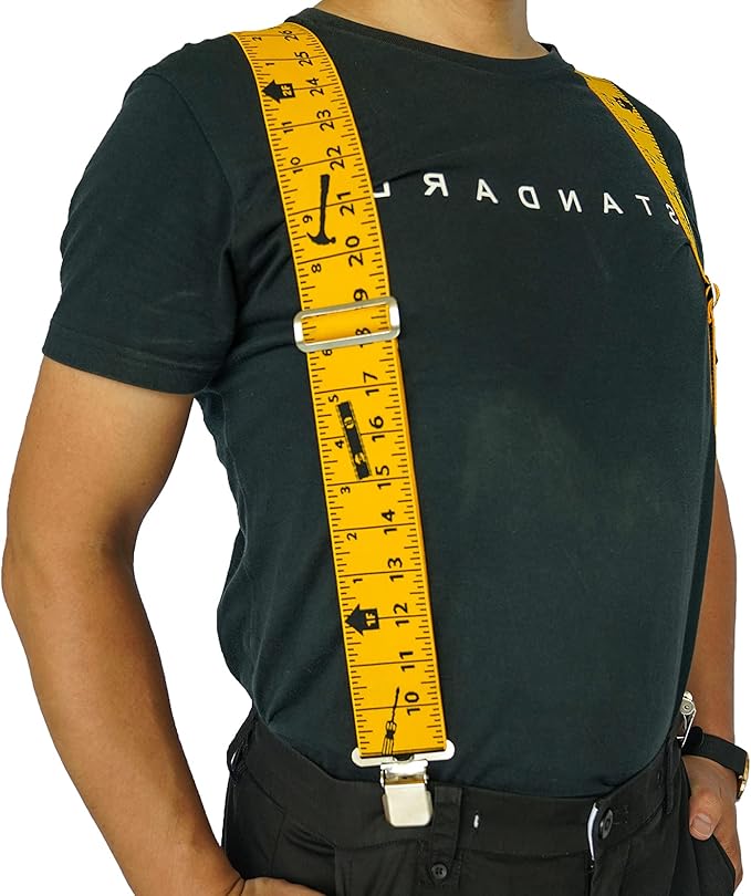 【SP0004】Mens Suspenders 2" Wide Adjustable and Elastic Braces X Shape with Very Strong Clips - Heavy Duty tape measure suspenders for men (Rule)