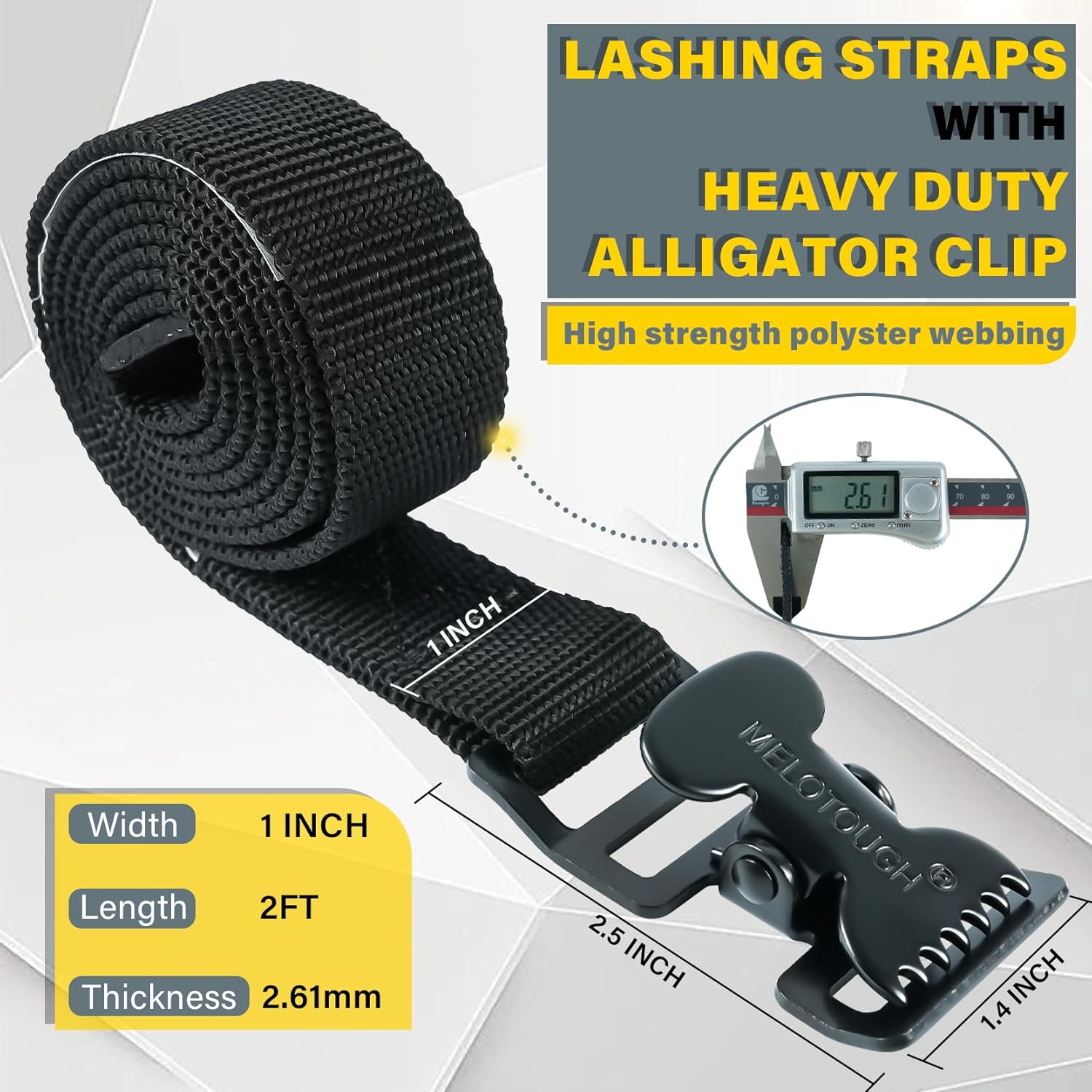 HIGH QUALITY WEBBING: lashing straps is tightly woven,well-made, very strong.strap 1 inch wide, 2 mm thickness.this thickness of strap is more sturdy than ordinary straps that are built to last for repeatedly use. -