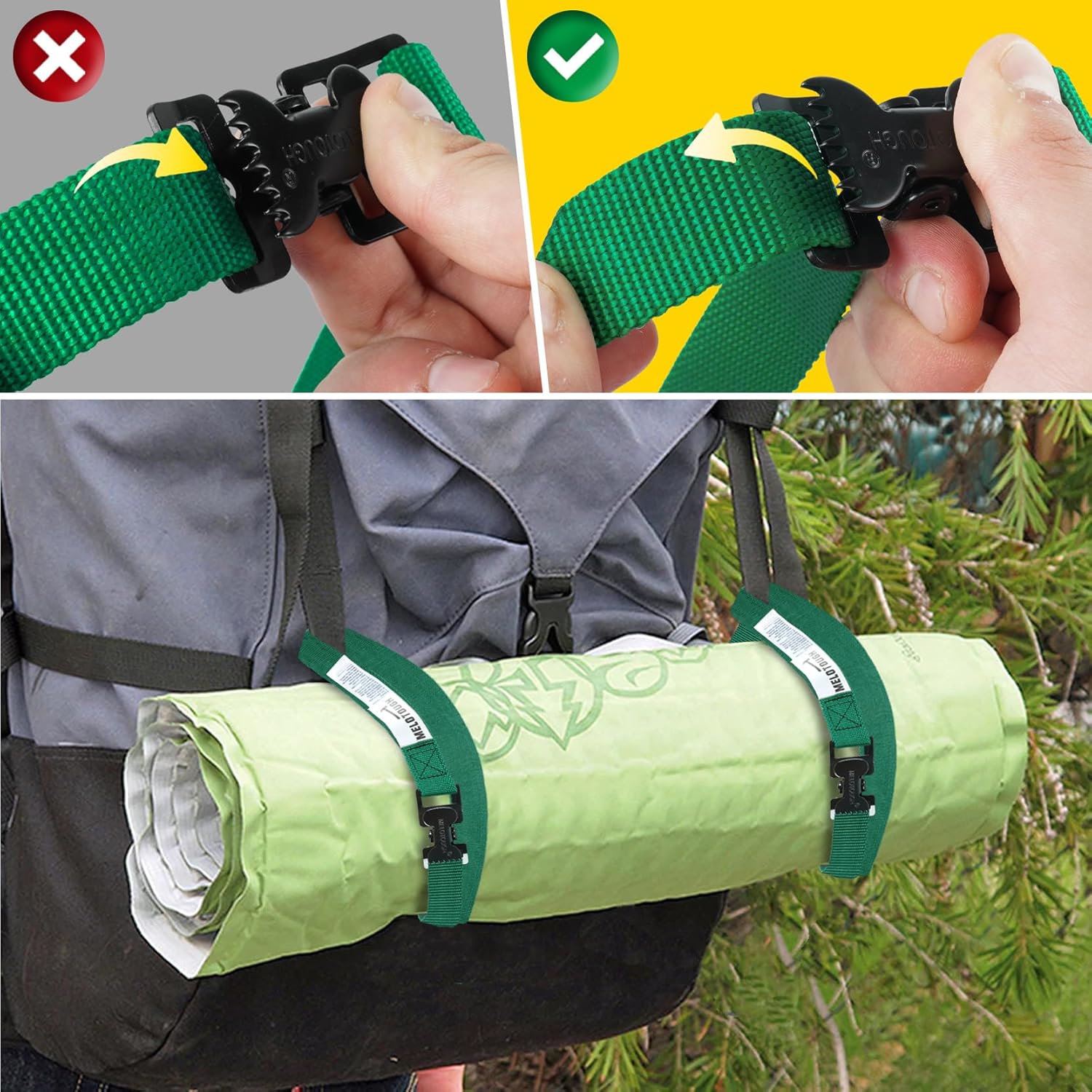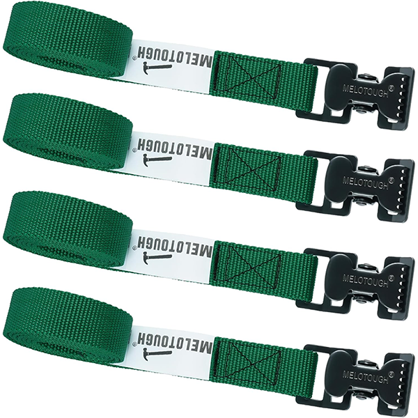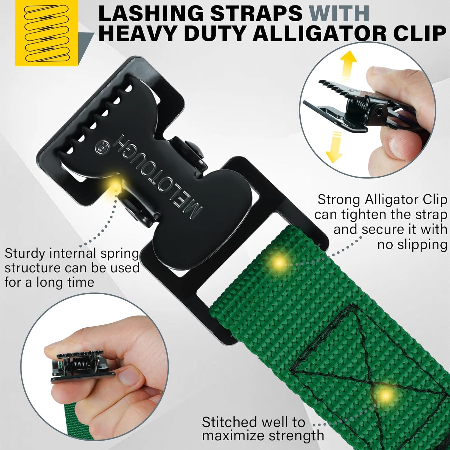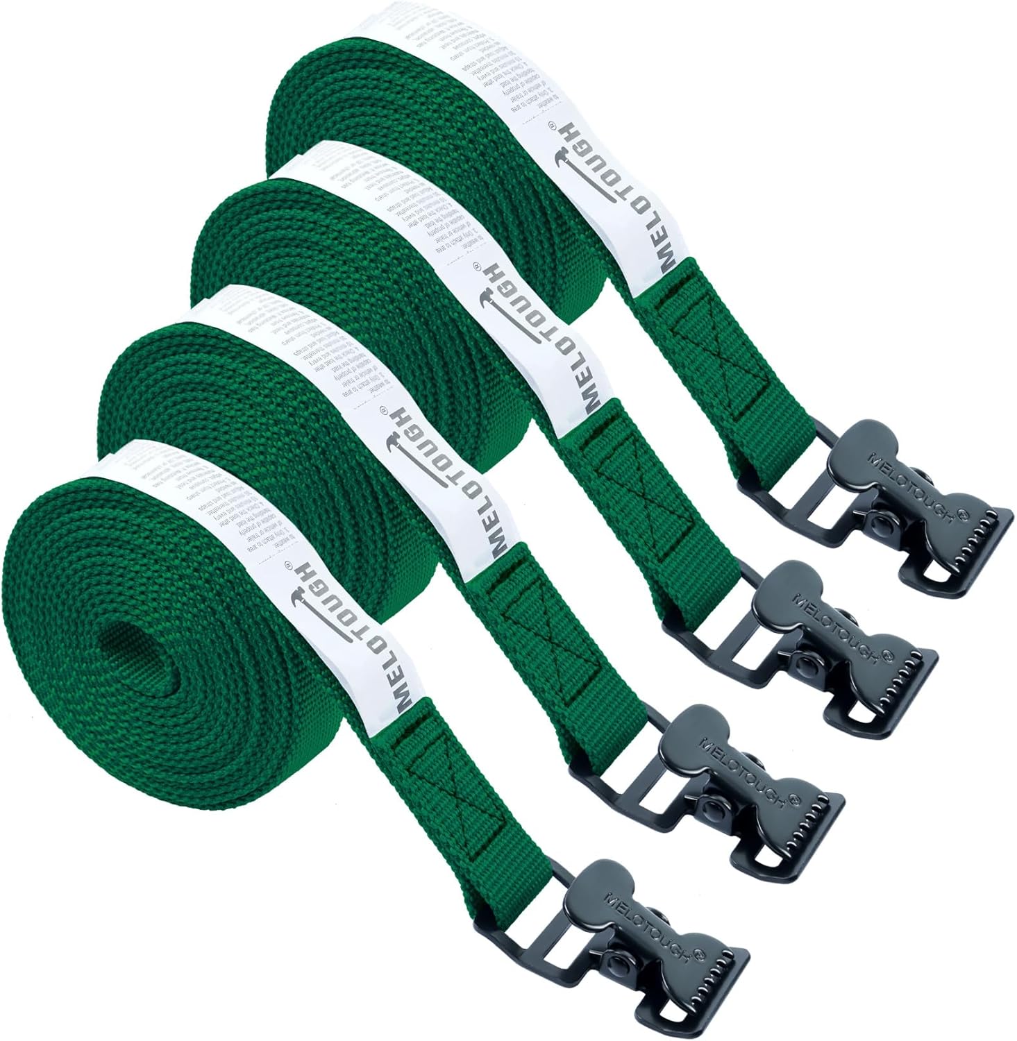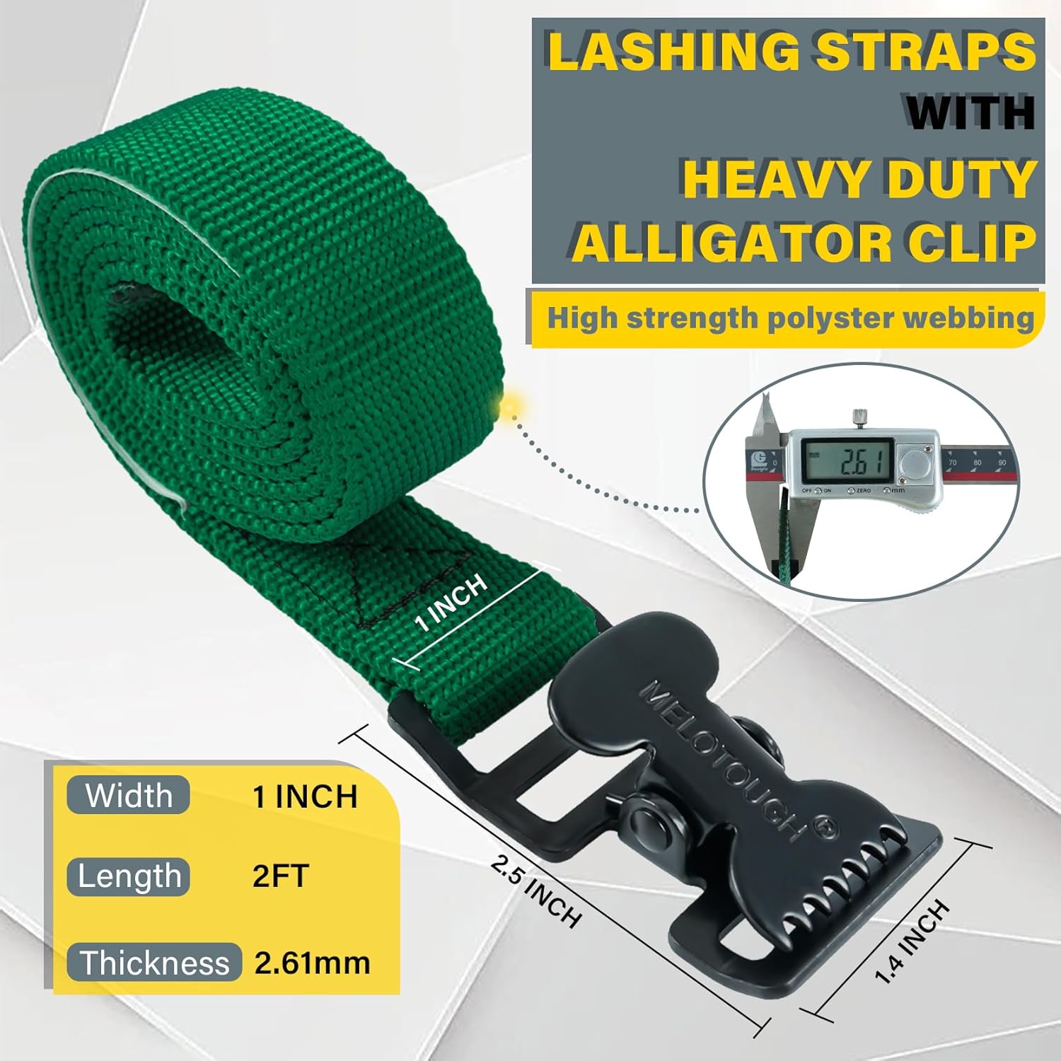 【MTS02-green】MELOTOUGH 4pk 1" x 2ft Lashing Straps with Alligator Thumb Buckle, Green, Up to 450lbs