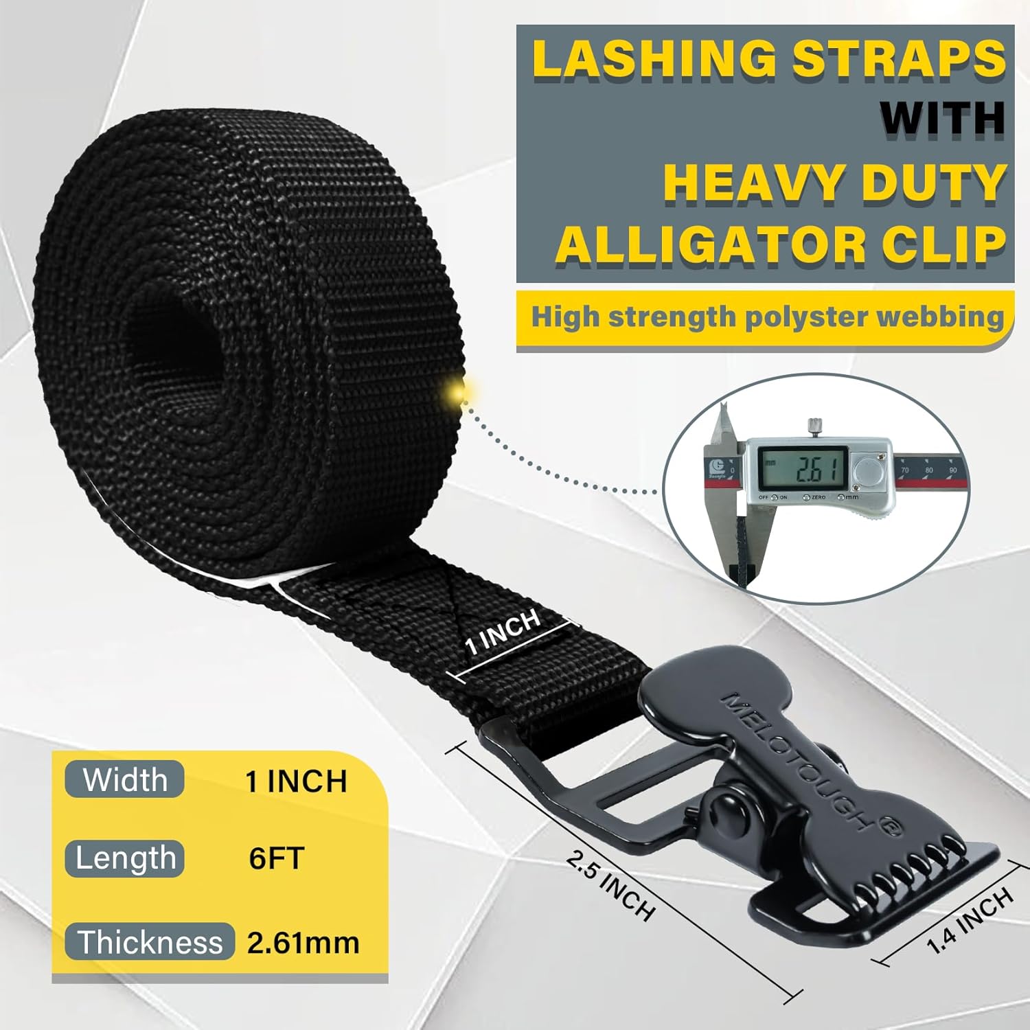 - QUANTITY:4-Pack of 1" x 6ft Utility Lashing Straps with Alligator clips. Working Load Limit / 450 lb. Breaking Strength.