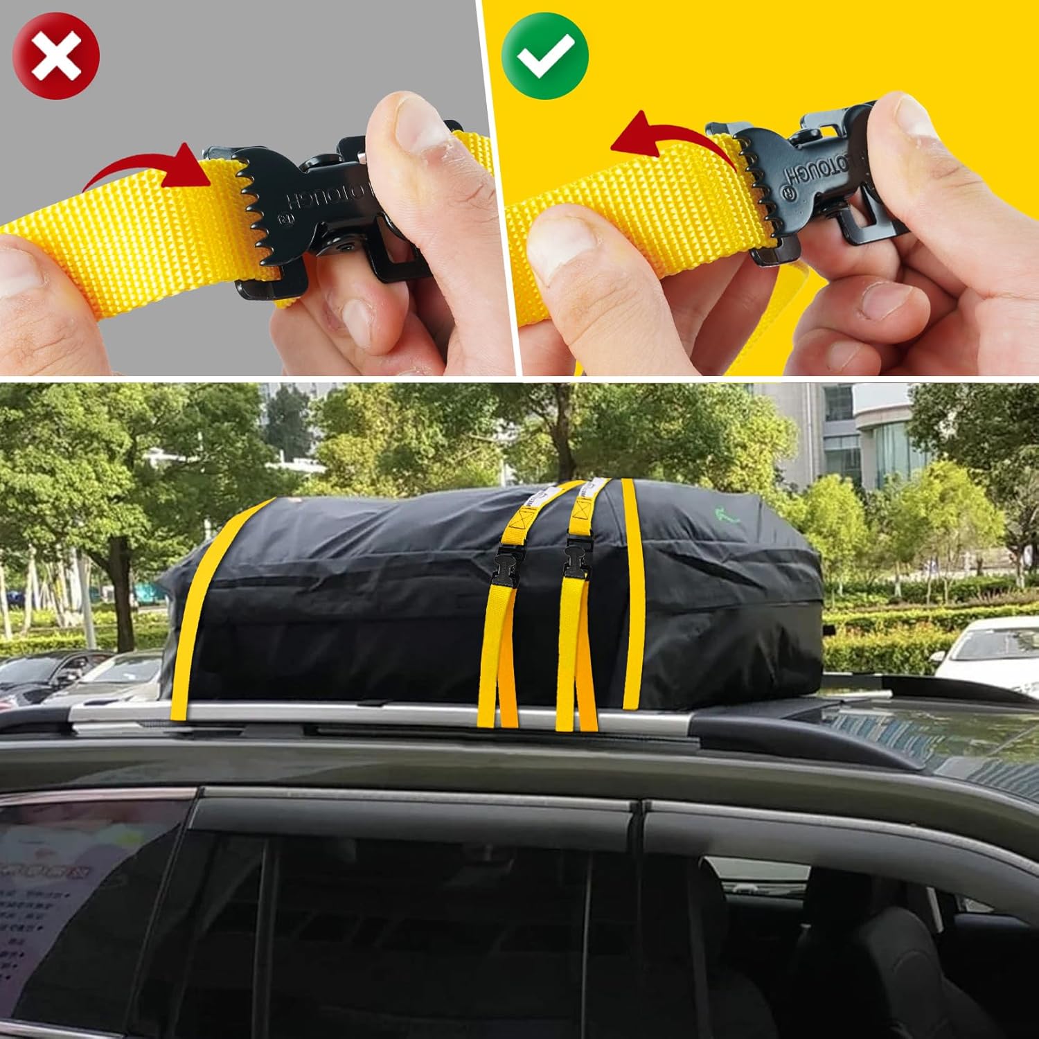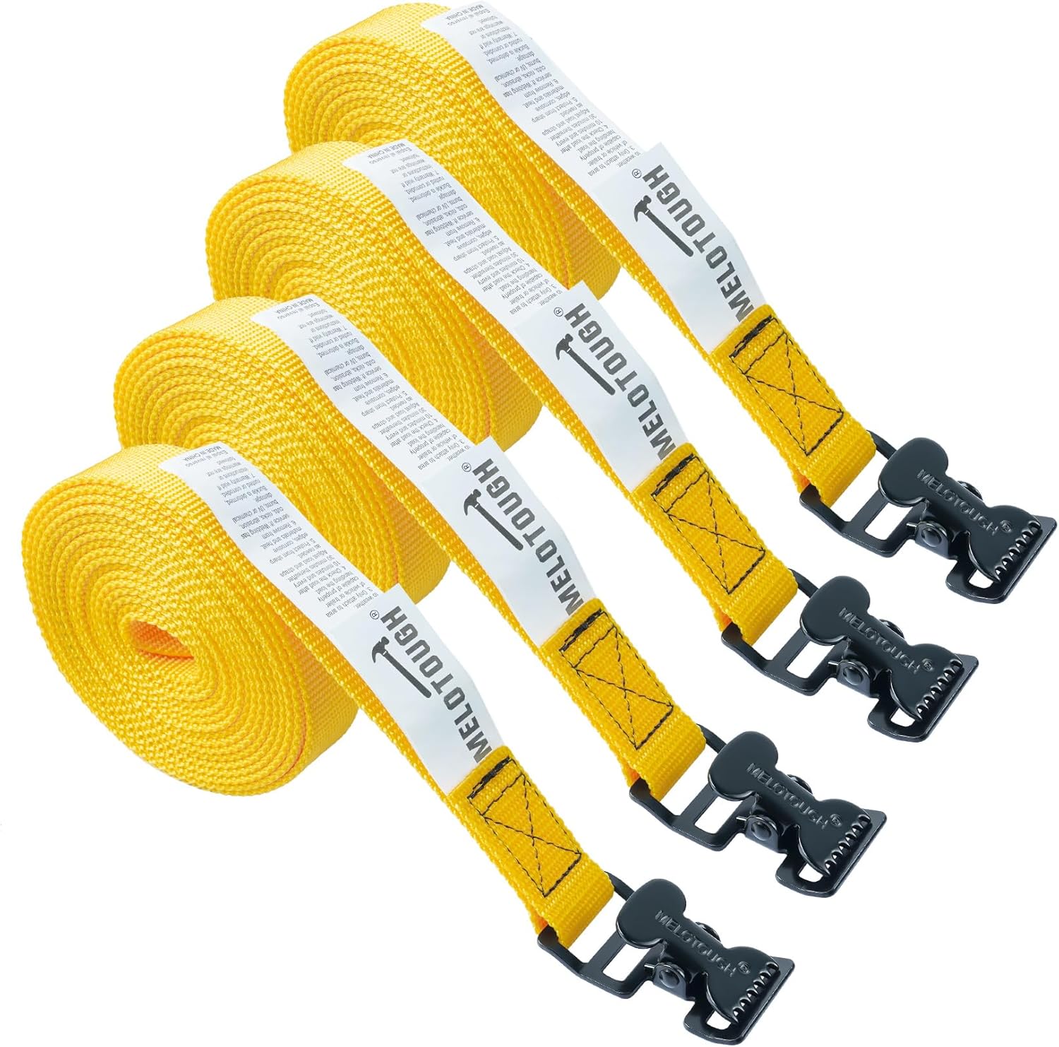 【MTS06-yellow】MELOTOUGH 4Pk 1" x 6ft Lashing Strap with Alligator Thumb Buckle Cargo Secure Webbing Up to 450lbs,Ladder Straps,Tie Down Straps,Utility Straps with Clips,Yellow