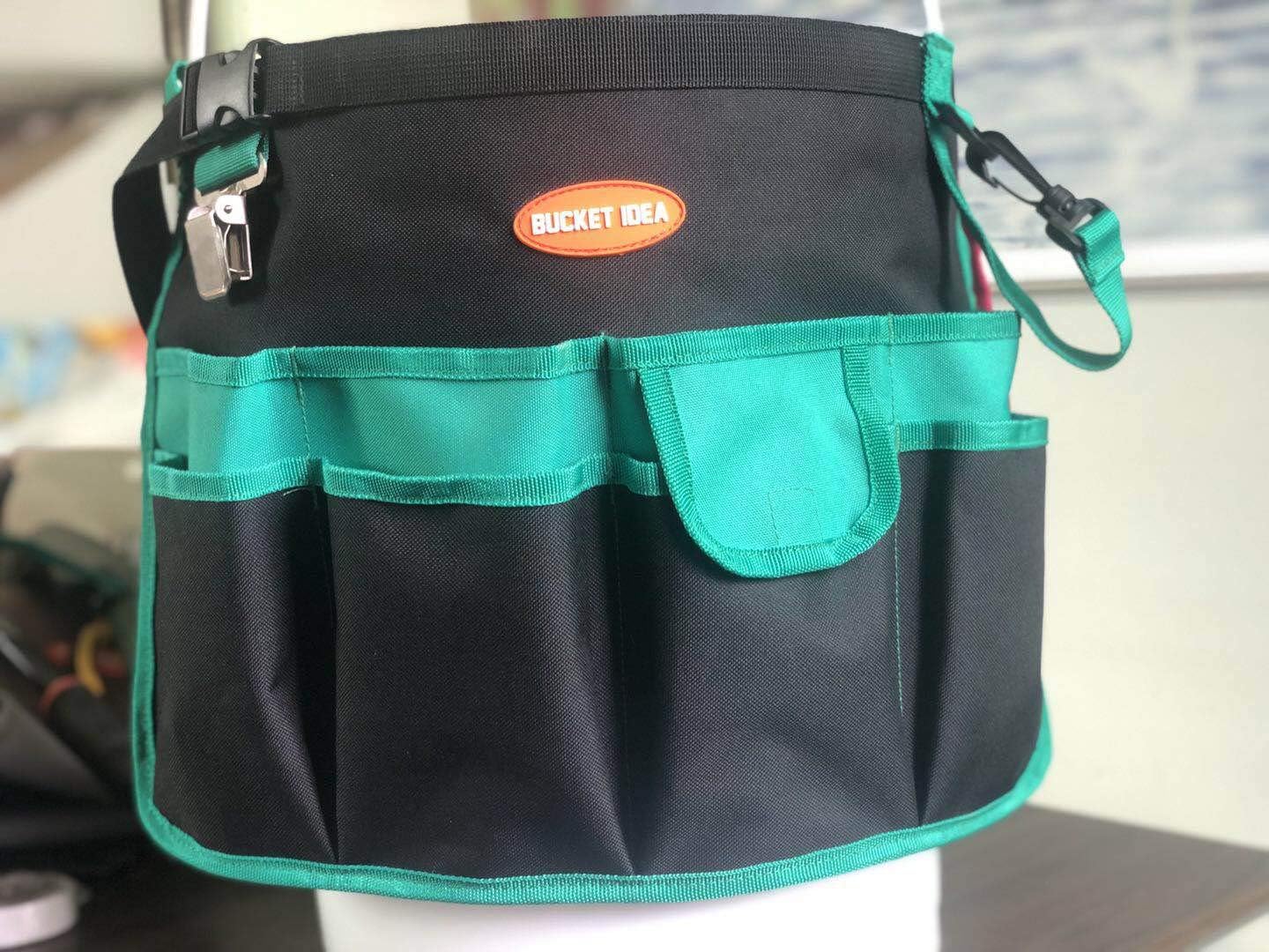Enough Space Bucket tool bag --3 pocket inside and outside ; garden glove clip Electric tape holder , Tape measure holder , key hook , long tools fixed loop -