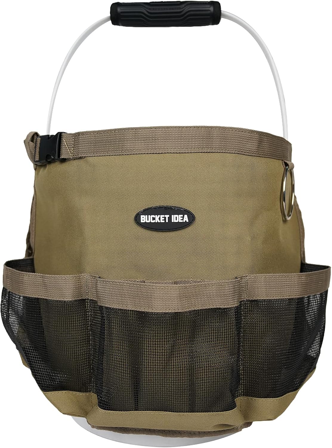 【BI02-Khaki】MELOTOUGH Car Wash Bucket Tool Organizer for Garden Tools Fit 3.5 to 5 Gallon Bucket (Khaki)
