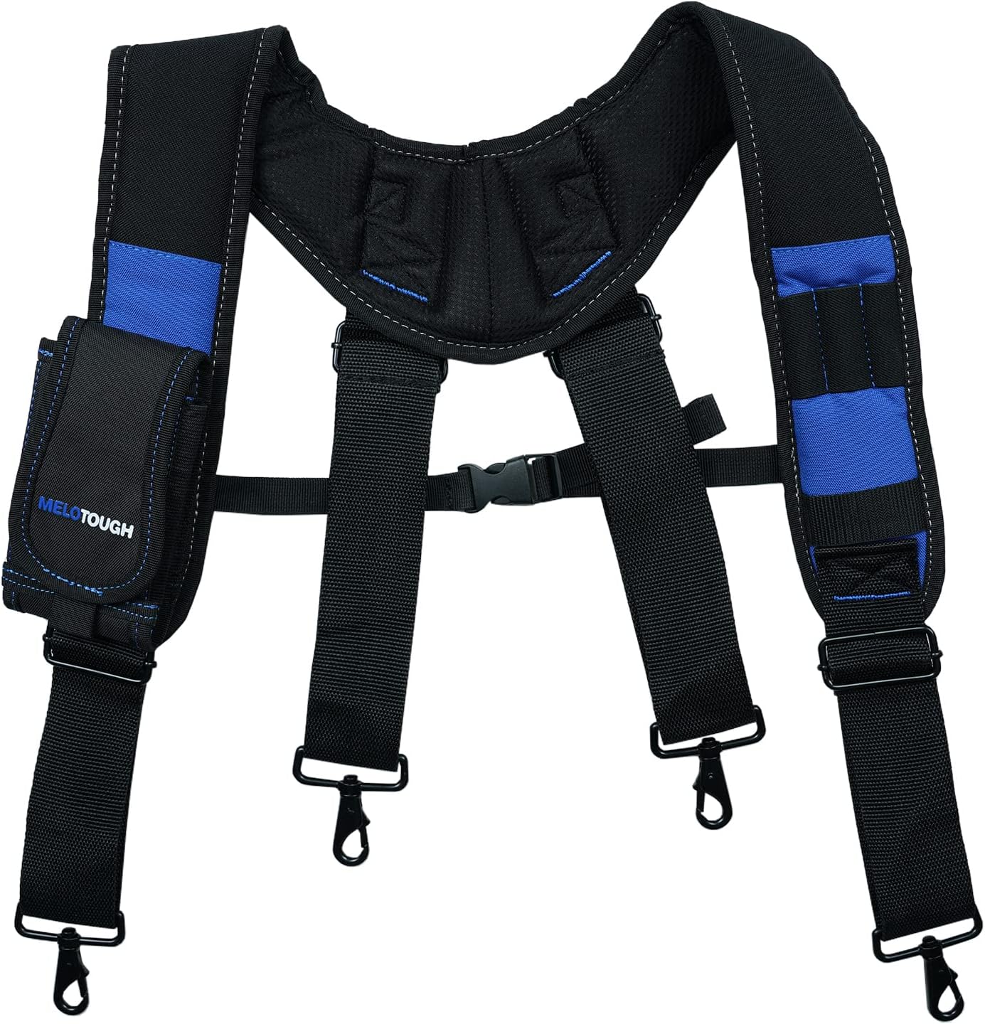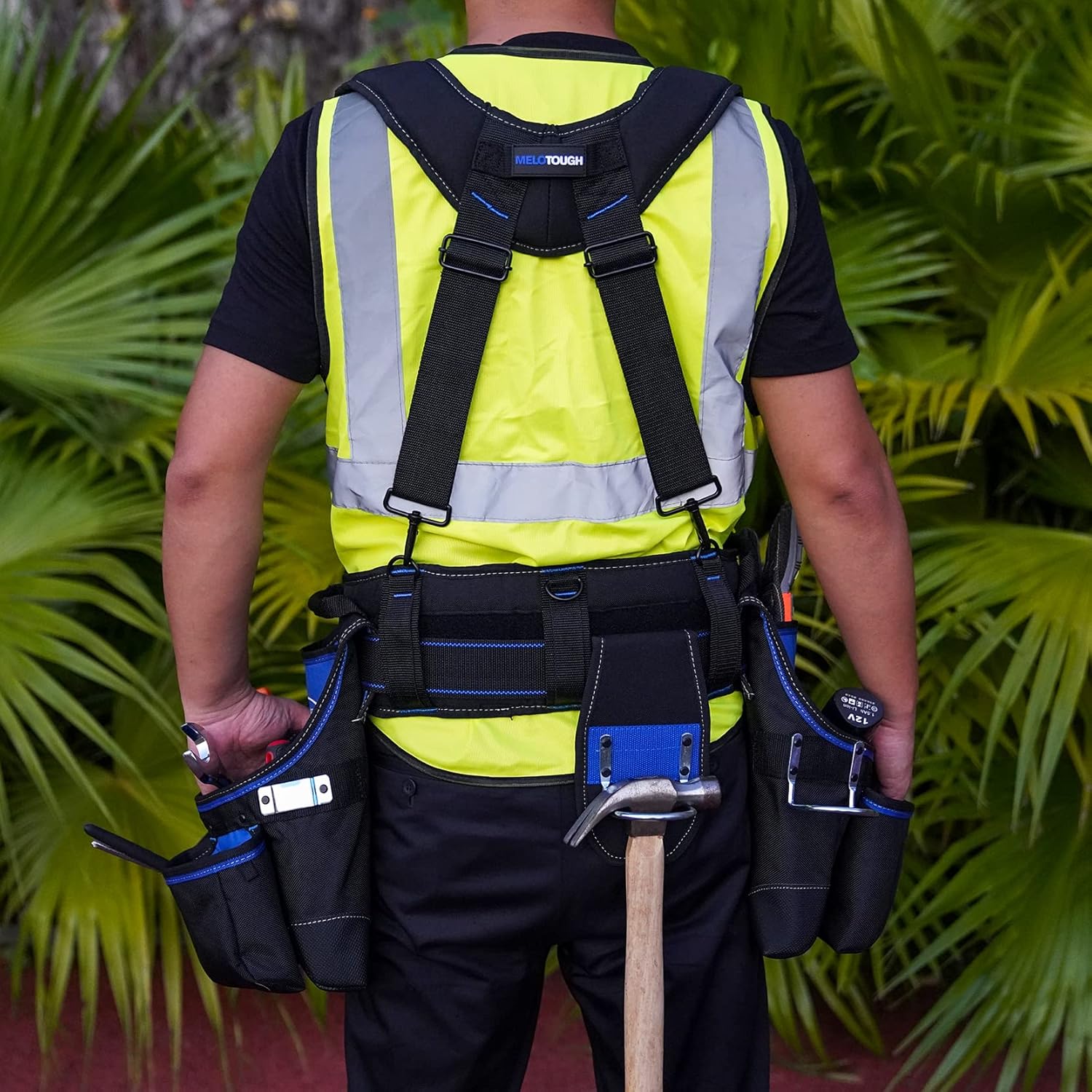 【TC02-Black】MELOTOUGH Pro Framer's Combo System Apron Tool Pouch Tool Belt with Suspenders Builder Heavy Duty Carpenter Suspension Rig Tool Belt and Multi Function (Blue)…