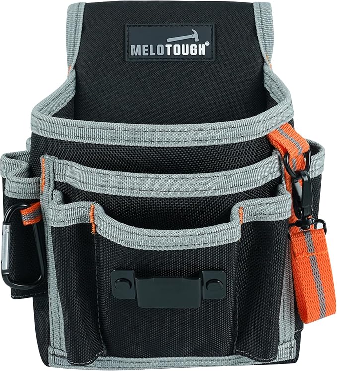 【MP001-Brown】MELOTOUGH Electrician's Small Tool Pouch for Tool Belt Tool Pouch Tool Holster with Multiple Pockets, Construction Pouch Tool Organizer for Tools