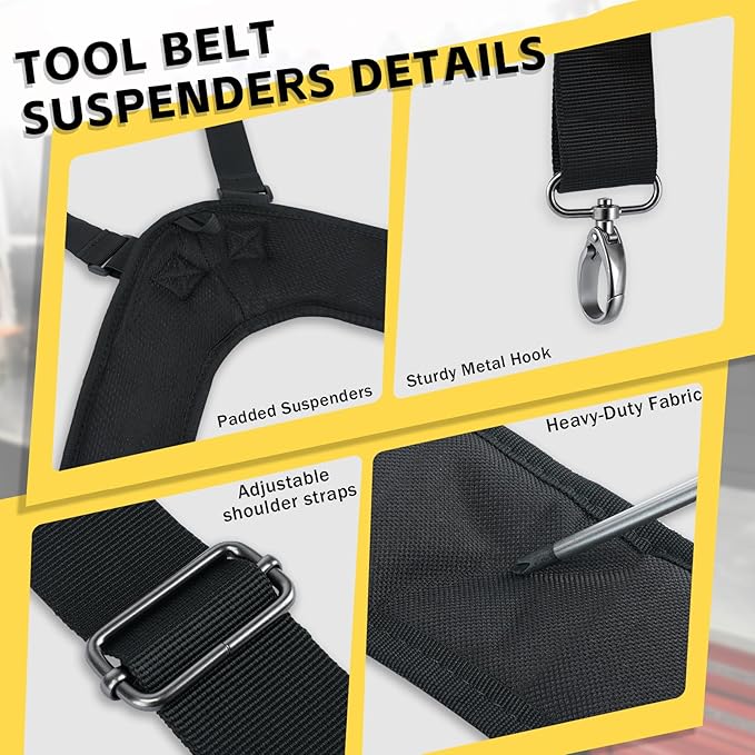 Padded Work Belt Suspenders ---Adjustable Thick breathable Foam Shoulder Pads help release your tool belt weight and save your back -