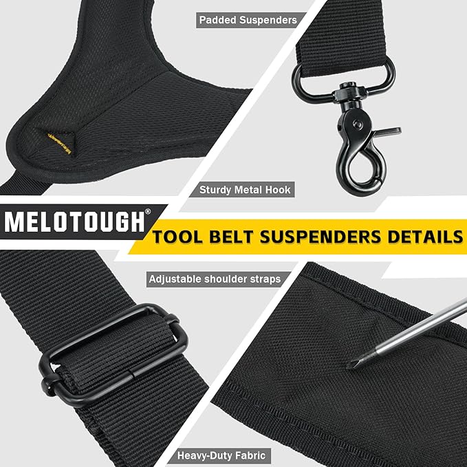 MELOTOUGH QUALITY: When you see a MeloTough product, you know that it is going to last. We make these tool belt suspenders for hard workers, dedicated people who need suspenders that they can rely on all day long..