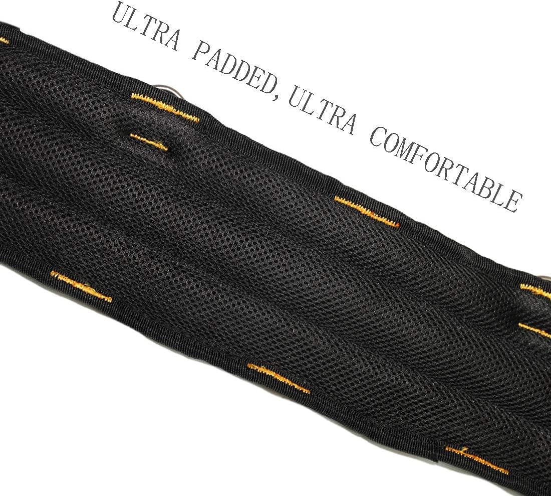 - Tough Material ---600D Polyester Heavy durable fabric make the Tool Belt Survive in any Gear Work . The Padded Belt Inside Dri-Lex Foam Cushion Weight of tool belt itself