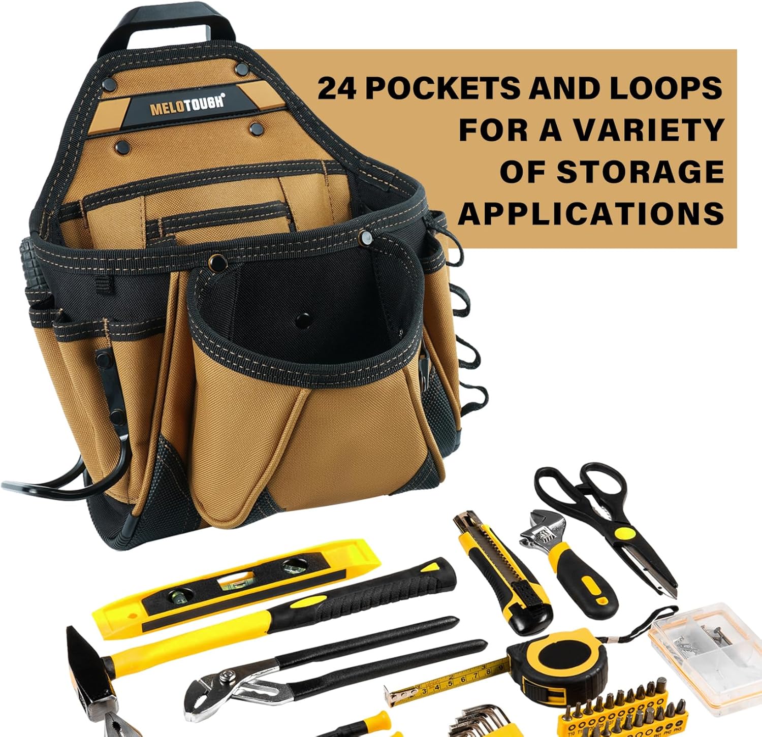 Dimension:13”L * 7”W * 12”H,Contractor tool pouch transforms how professional electricians carry their tools