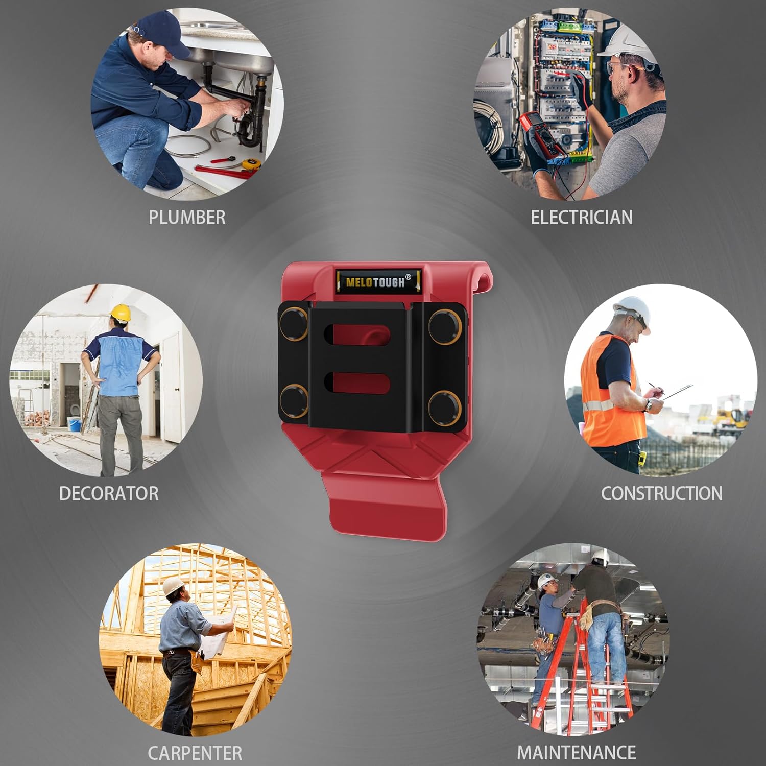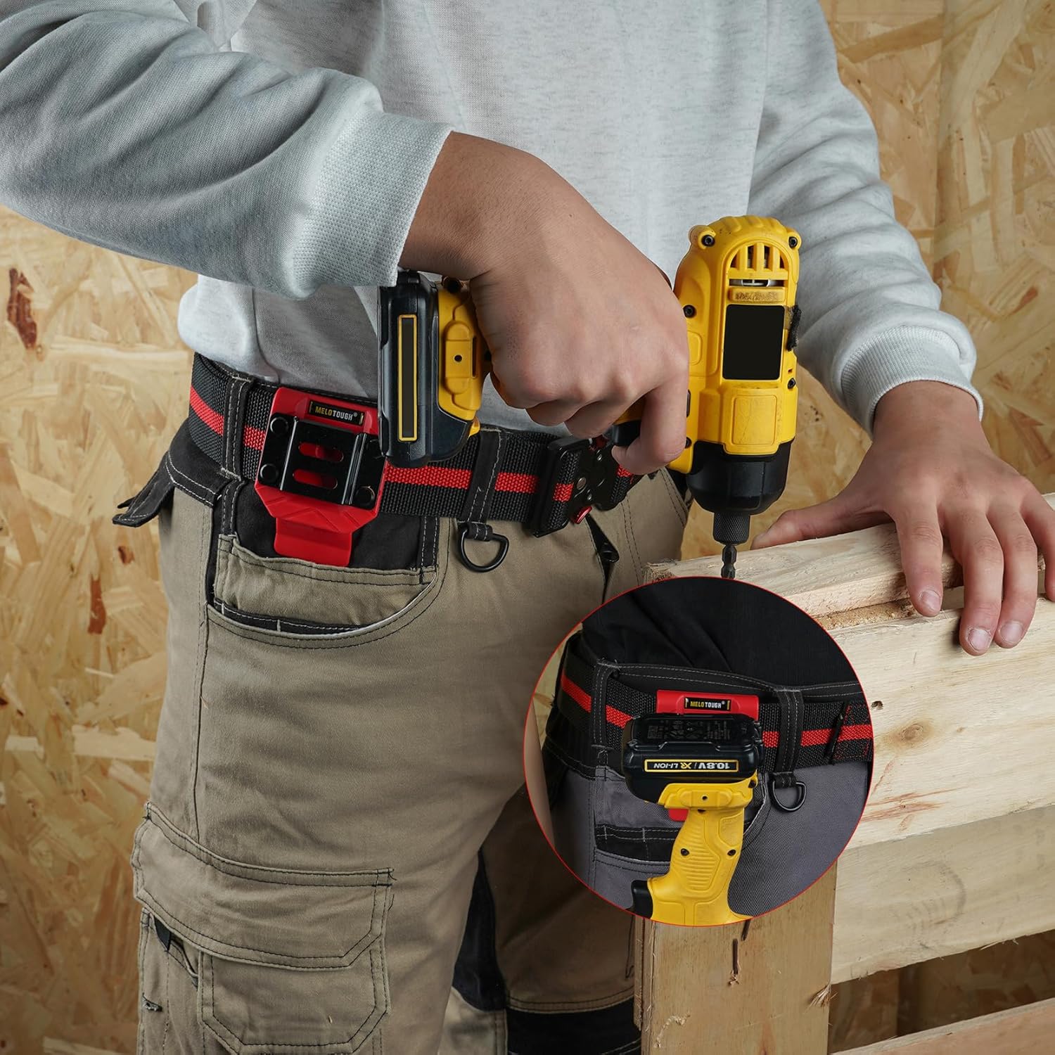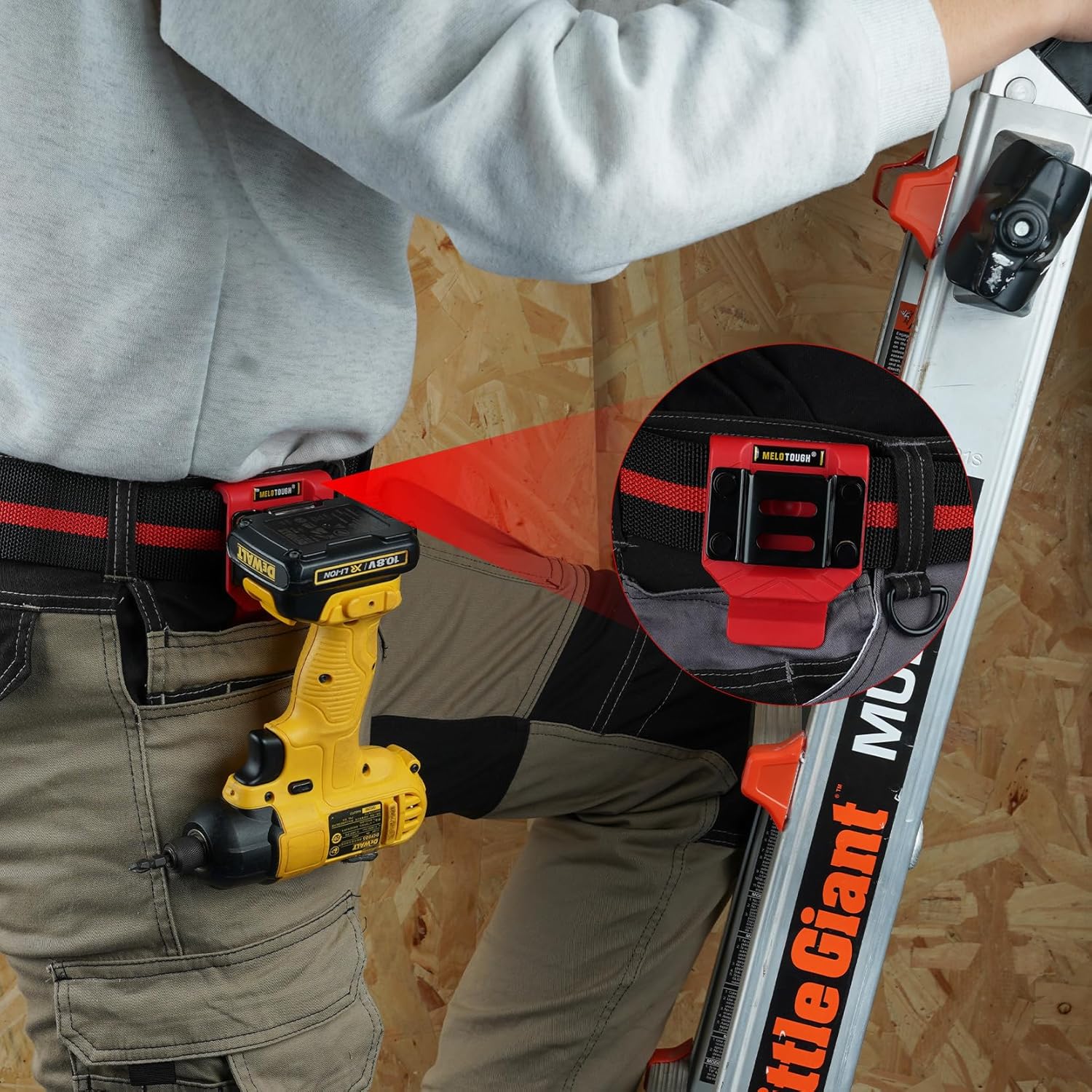 【MBD03-Red】MELOTOUGH Drill Belt Clip,Drill Holder for Tool Belt,Measuring Tape Holder for Impact Driver,Tape Measure