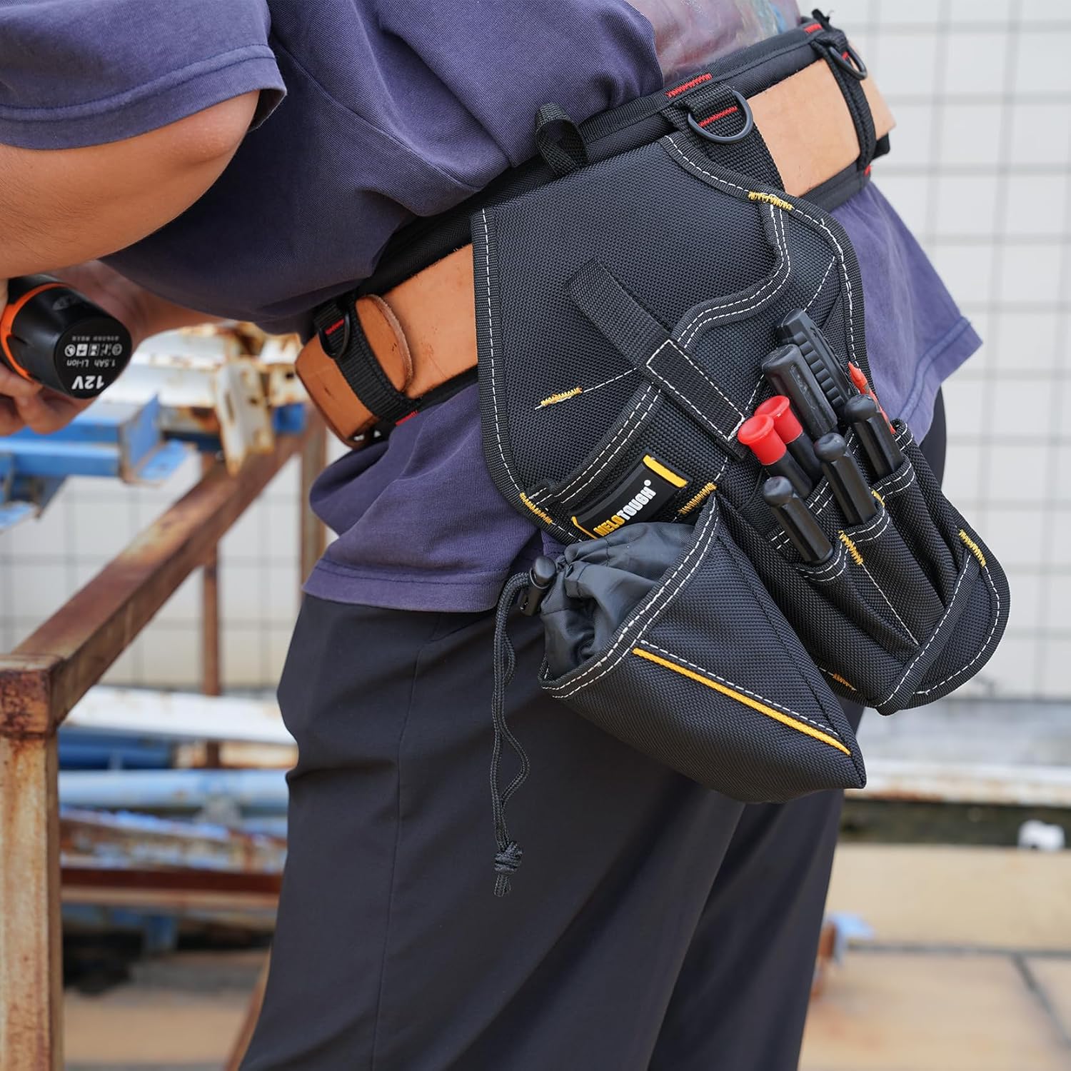 - HEAVY DUTY IMPACT DRILL HOLSTER : Made of 1680D ballistic fabric, durable and suitable for most power drill.