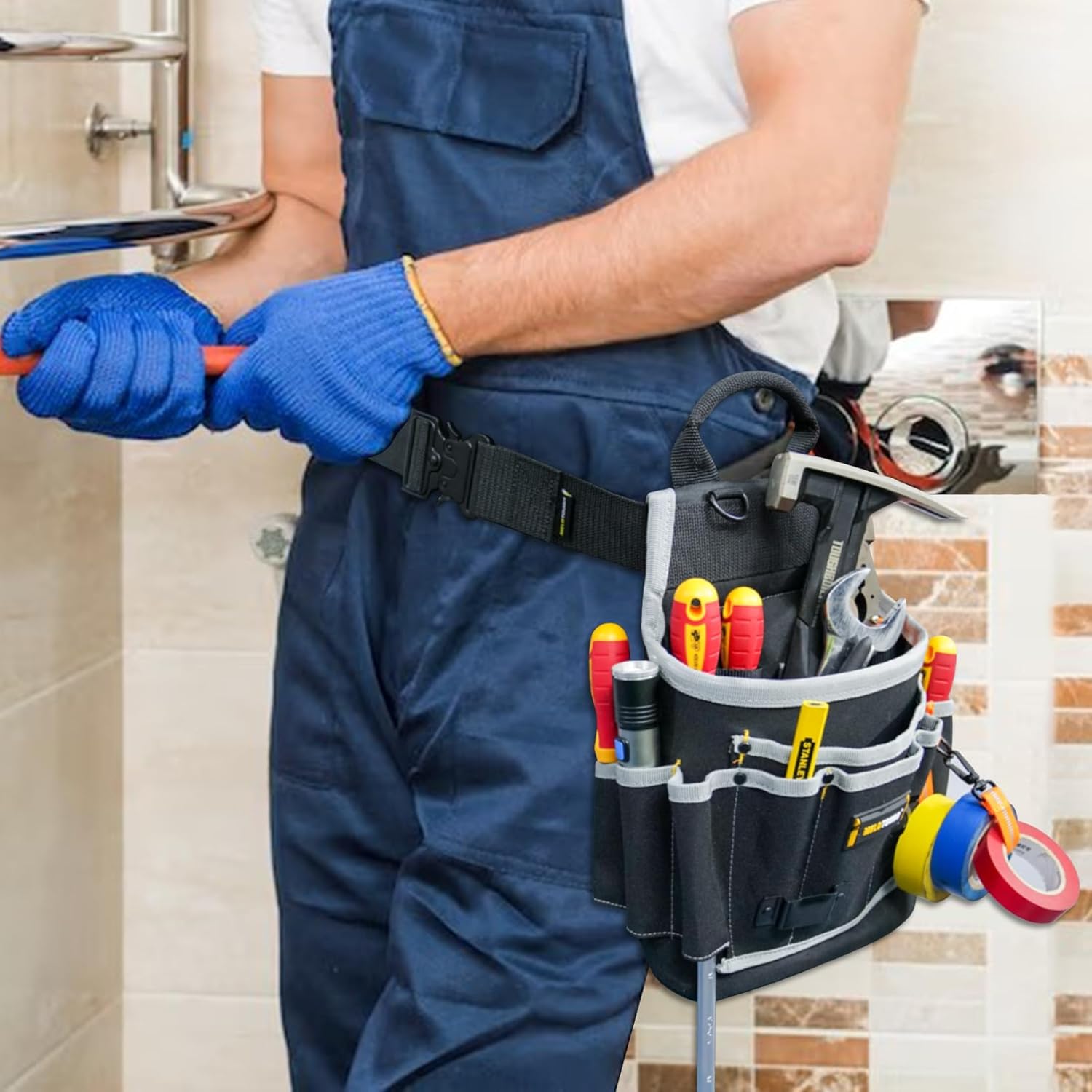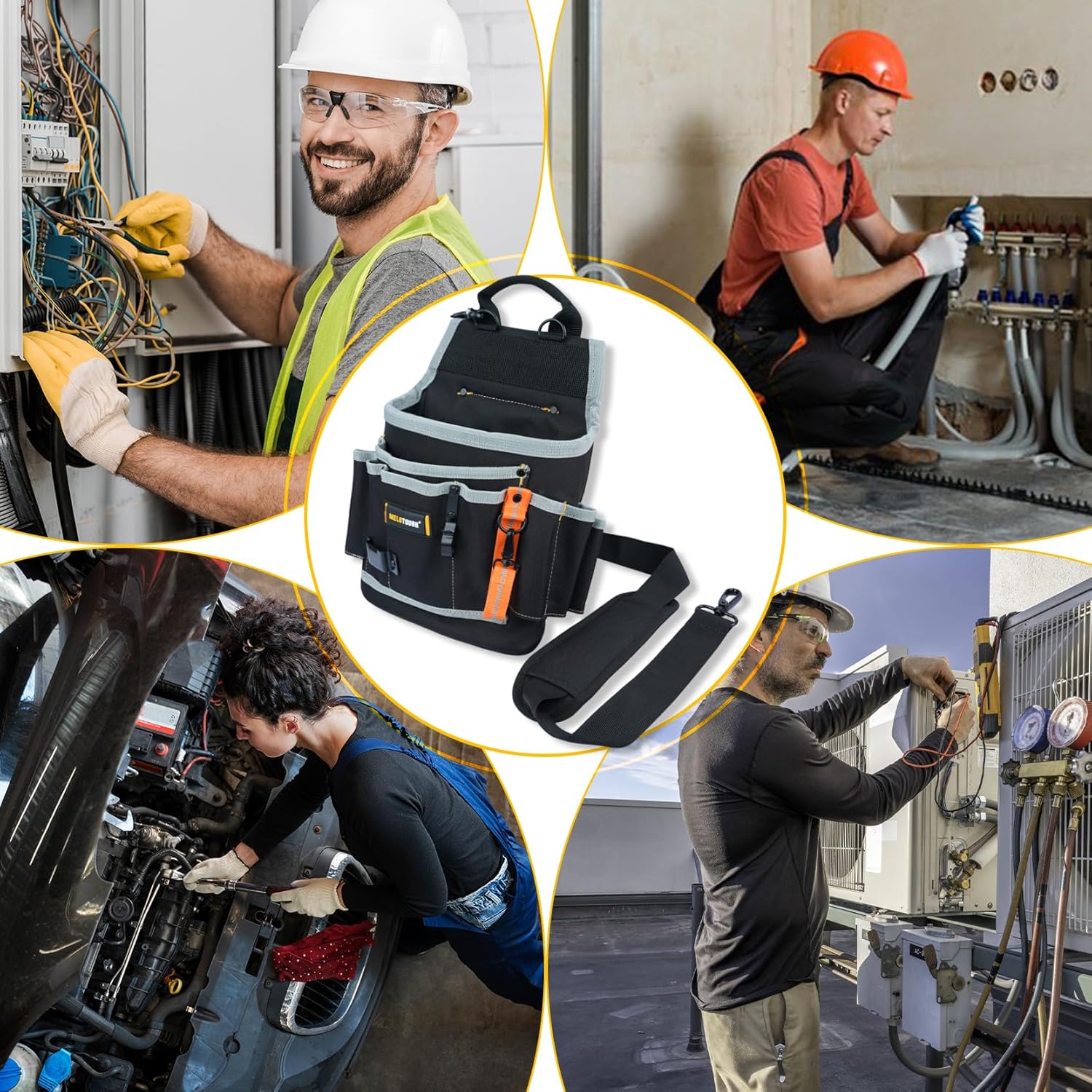 - DURABLE TOOL BELT BAG : Electrician pouch made of high quality 600D fabric, including reinforced PE base plate to improve the durability of the bolt bag for extended use and wear.