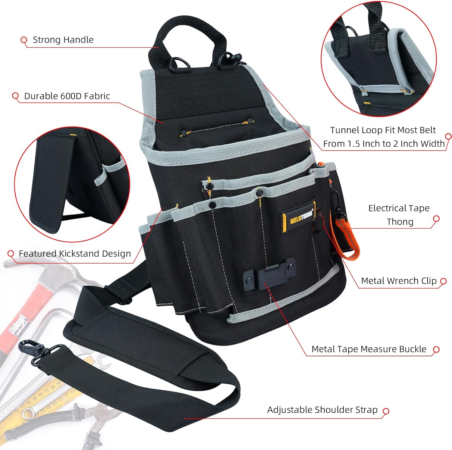 MELOTOUGH Electrician Tool Pouch Tool Belt Pouches Multiple Pockets Tool Organizer for Technician, Maintenance, HVAC