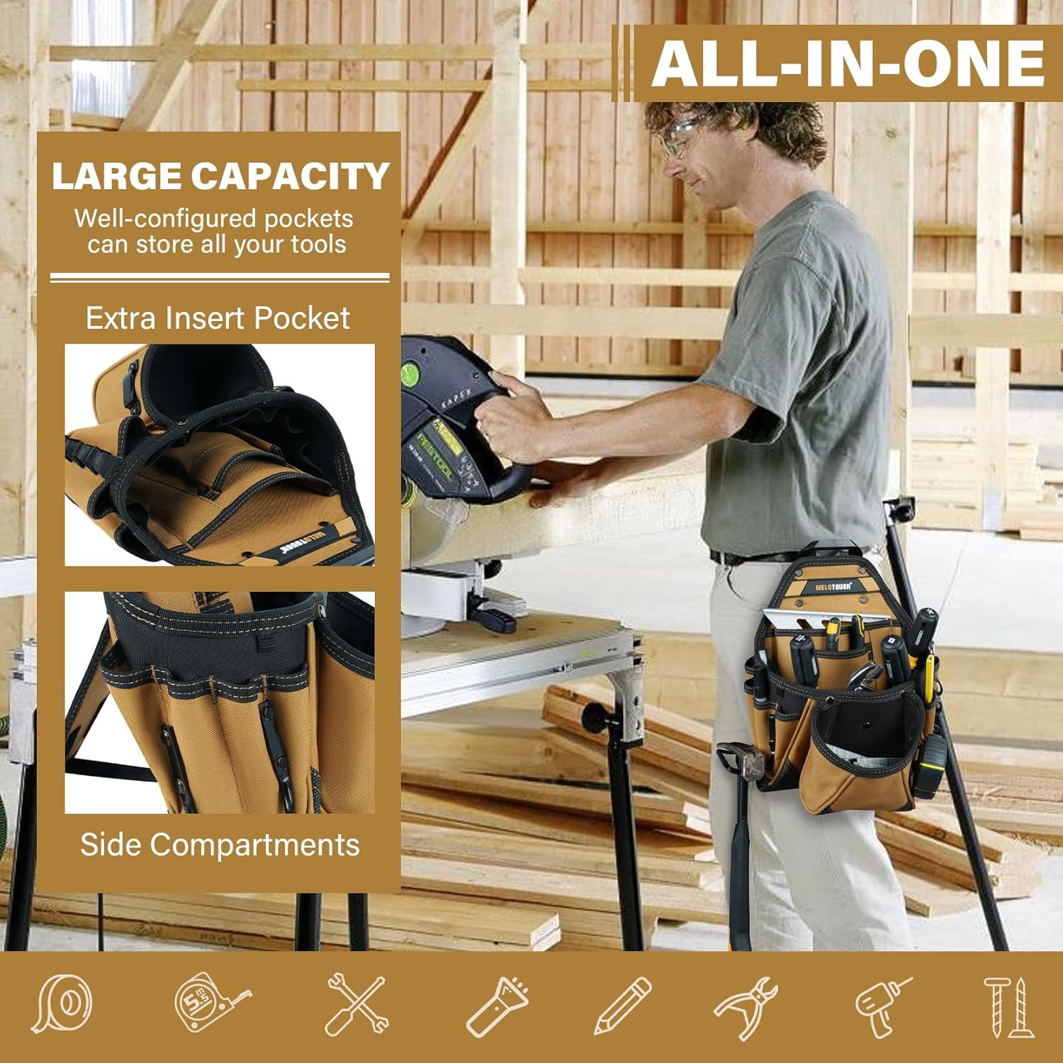MELOTOUGH Contractor Electrician Tool Pouch - Nail Screw Work Framer Belt With Hammer Loop Clip-on Utility Organizer and Kickstand Back