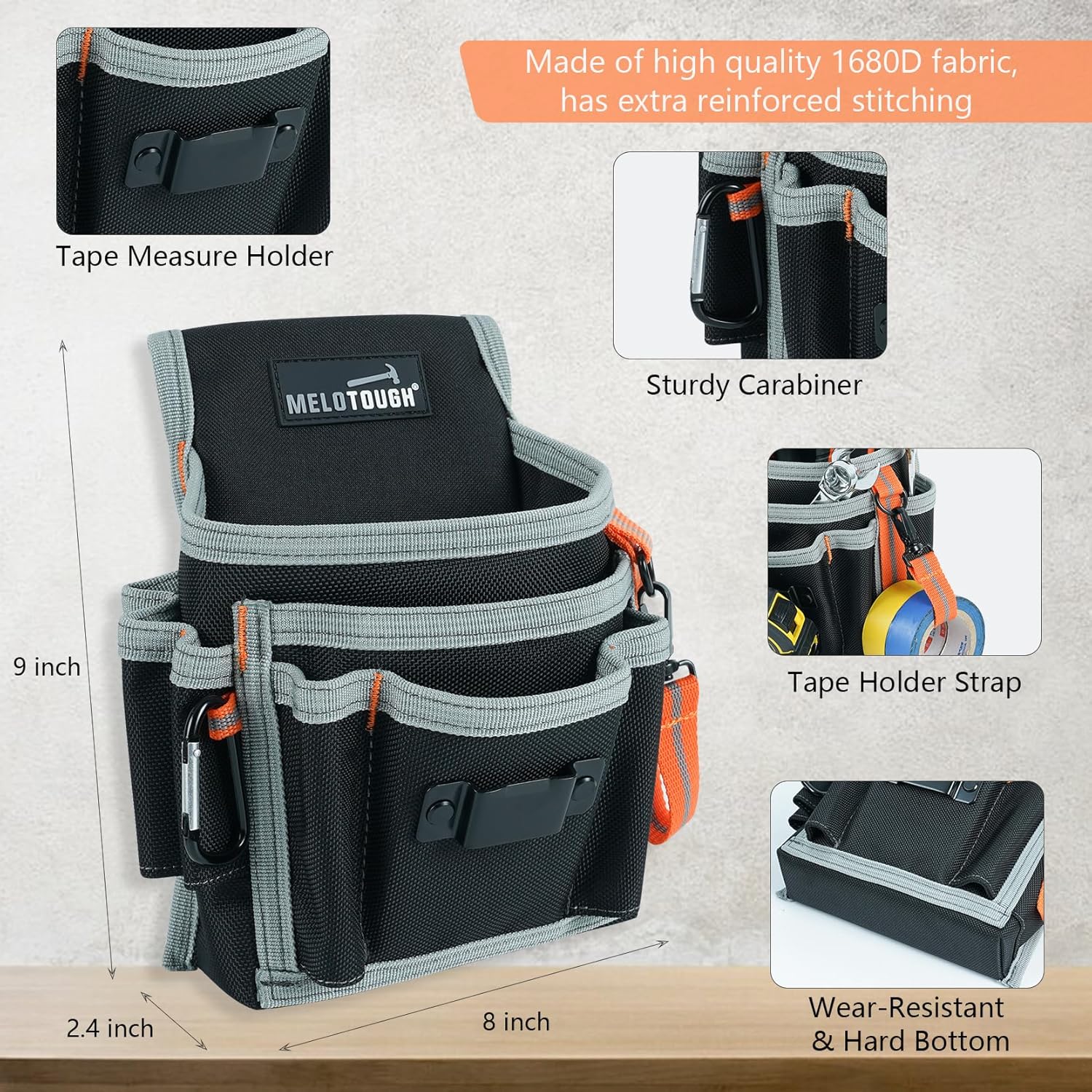 ✅Tool pouch includes a carabiner,a tape holder strap, a tape measure holder to hold and organize your tool,the tool pouch make your tools within reach