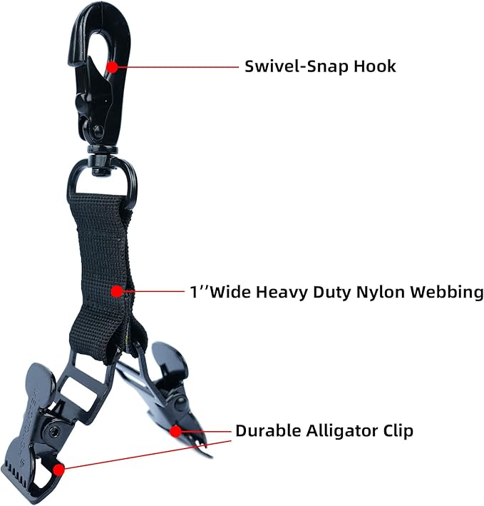 ✅ Metal Glove Clip --Made of heavy-duty 1.2” wide nylon, a powerful alligator clip that will secure your gloves, and an industrial strength black, swivel-snap hook ,unlike plastic clips that break suddenly.