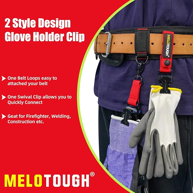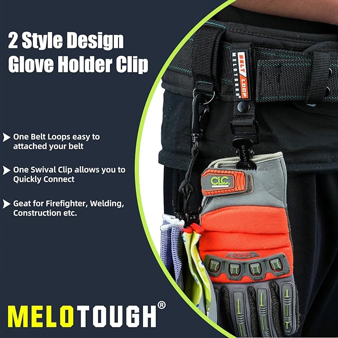 ✅Package Content---You Will Obtain 2 pieces of Glove Holder Clips, One for firefighter gloves clip,one for construction glove clip holder attached to your tool belt.