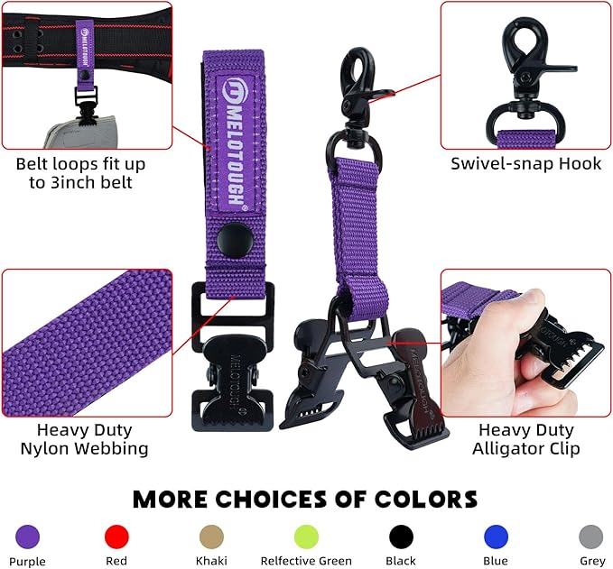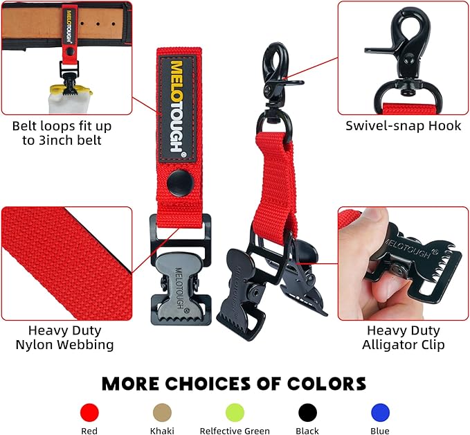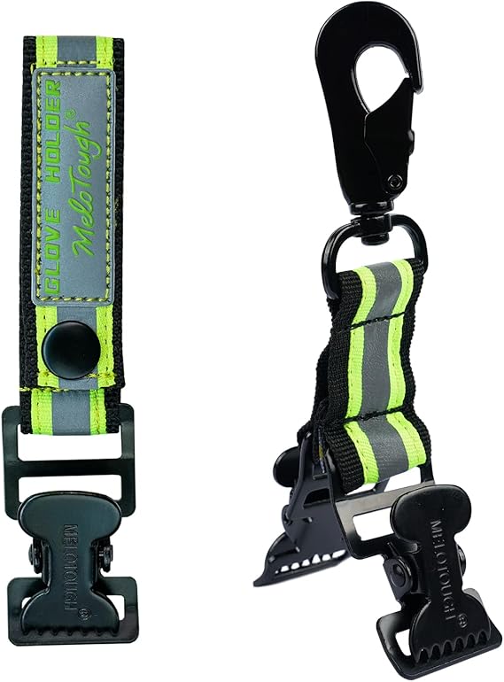 ✅Alligator Clip Glove Holder---Our metal glove clip holder made of heavy-duty 1” wide nylon with reflective tape, a powerful alligator clip that will secure your gloves, and an industrial strength black, swivel-snap hook ,unlike plastic clips that break suddenly.