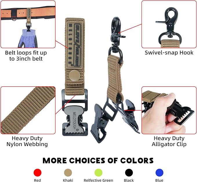 MELOTOUGH Firefighter Glove Strap | Work Glove Holder Clip with Glove Leash Swivel Snap Hook,Alligator Clip