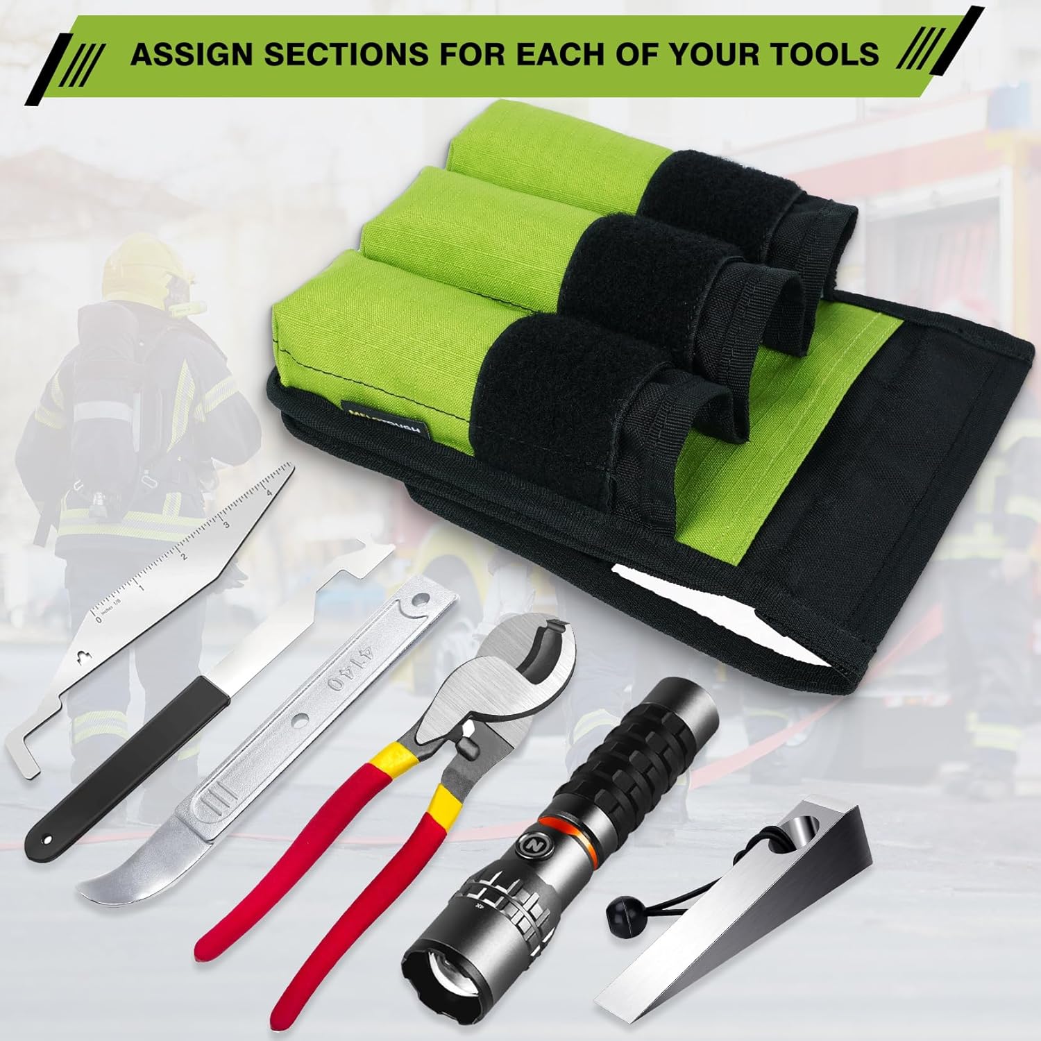 【EFFICIENT ORGANIZATION】: Our tool pouch has 7 compartments that provide enough storage space. These pockets can be categorized to store different firefighter tools, such as wedges, pliers, screwdrivers, wire cutters, flashlights, etc., ensuring that firefighters can quickly find what they want -