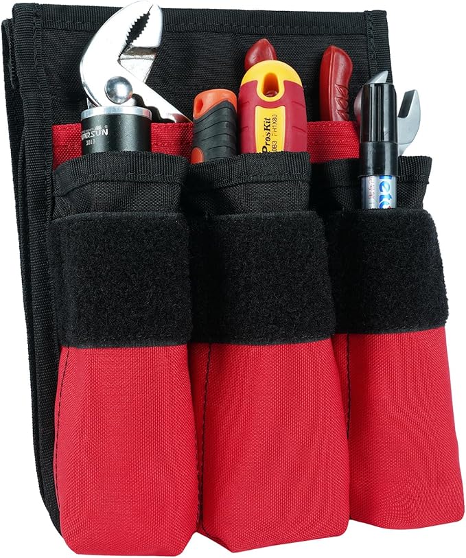 【TRANSPARENT FLAP DESIGN】: This pocket tool pouch features a flip-top design, removable velcro front cover prevents tools from falling out ,made of clear PVC,easy to know where your tools are,you can use the pouch with or without it. The back cover prevents the tool kit from deforming -