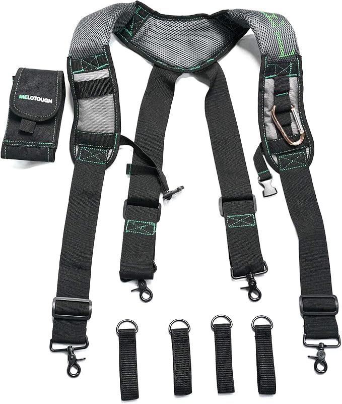 【SG001-Clip】MELOTOUGH Gel Padded Tool Belt Suspenders - Heavy Duty Clip End Work Suspenders