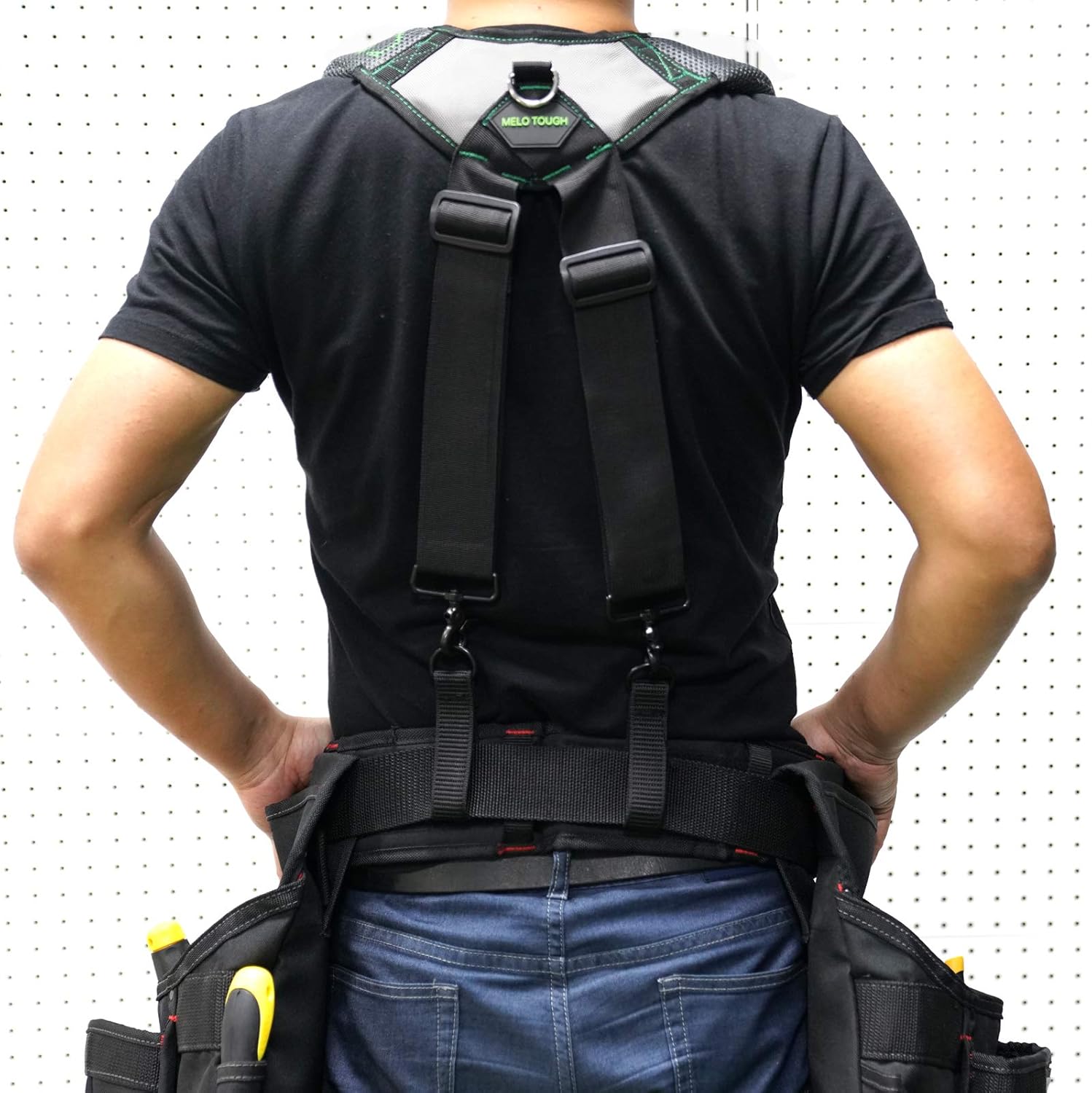 Adjustable Tool Belt Suspenders :Suspenders are a One-Size-Fits-All men’s accessory. They fit all regular size. It easy to apply to any MeloTough tool belt that has a strap that they can wrap around with the provided loops.Heavy duty nickle hook can attached any tool belt without trapping heat and moisture. -