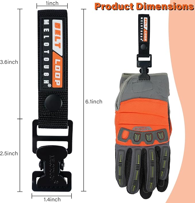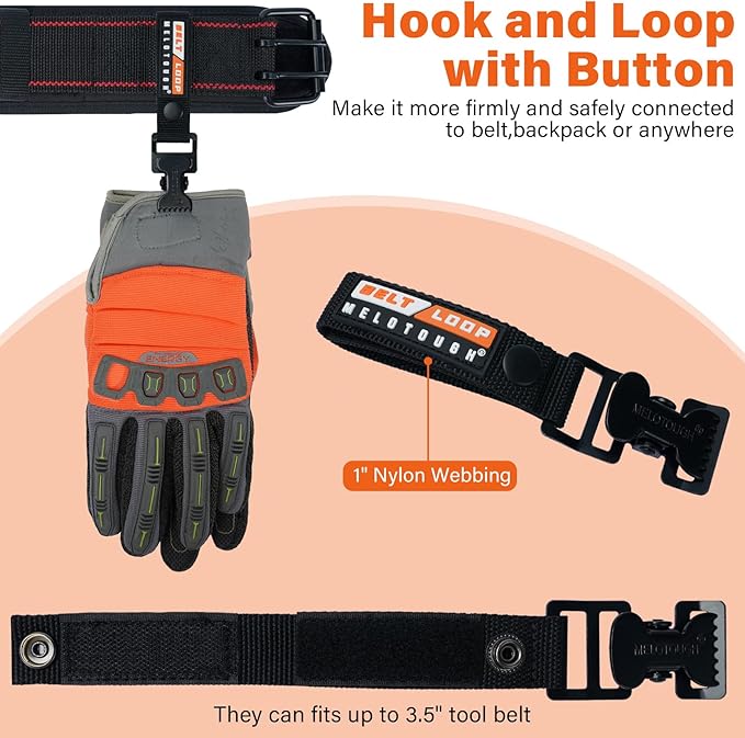 【MGH01-BLK-1】MELOTOUGH Glove Clips for Work Glove Holders Work Glove Holder for Belt Firefighter Glove Strap (Work Glove Holder)