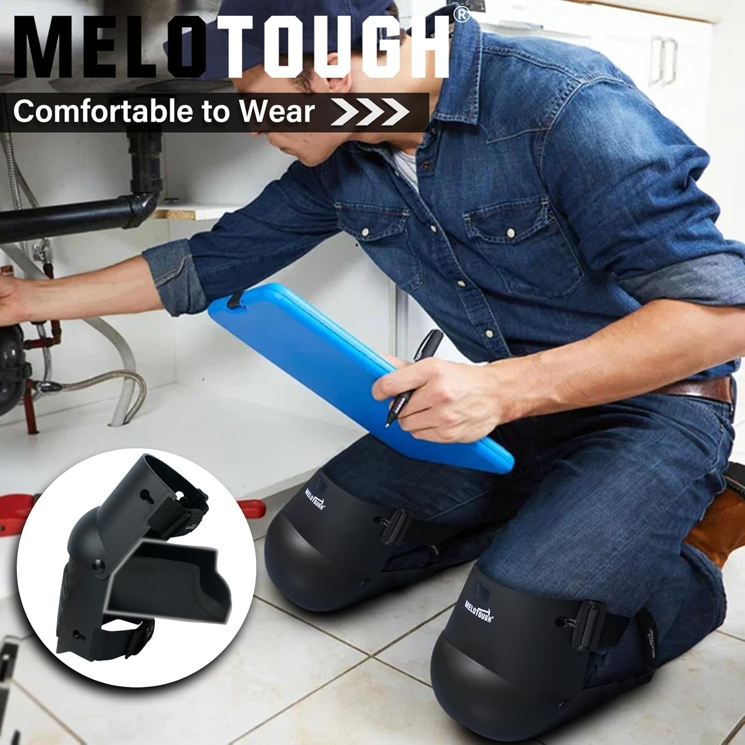 MELOTOUGH Knee Pads for Work,Construction,Flooring,Gardening-Comfortable and Flexible(Blue)