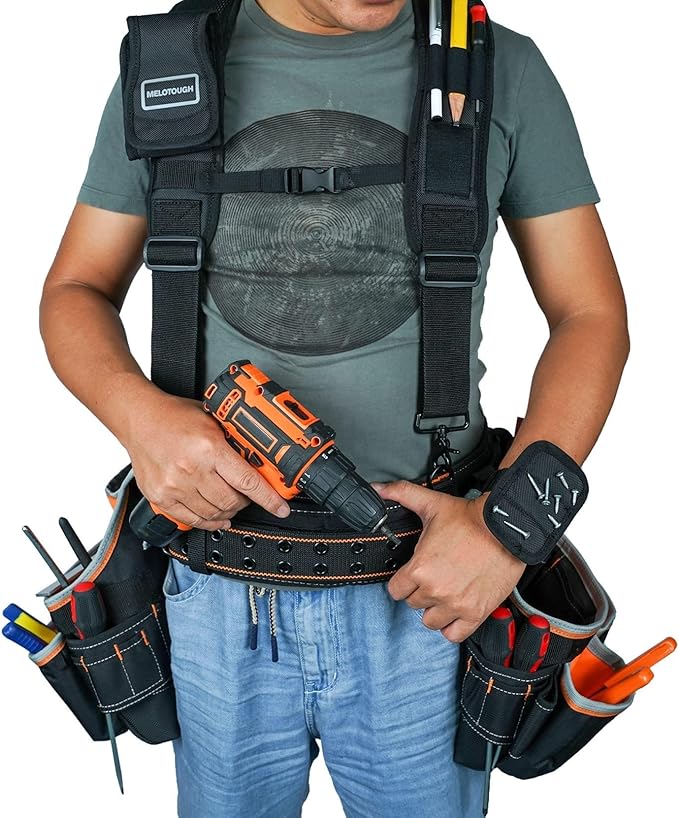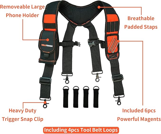 MELOTOUGH Magnetic Tool Belt Suspenders with Magnetic WristBand for Work Belt Padded Suspenders Constrcution