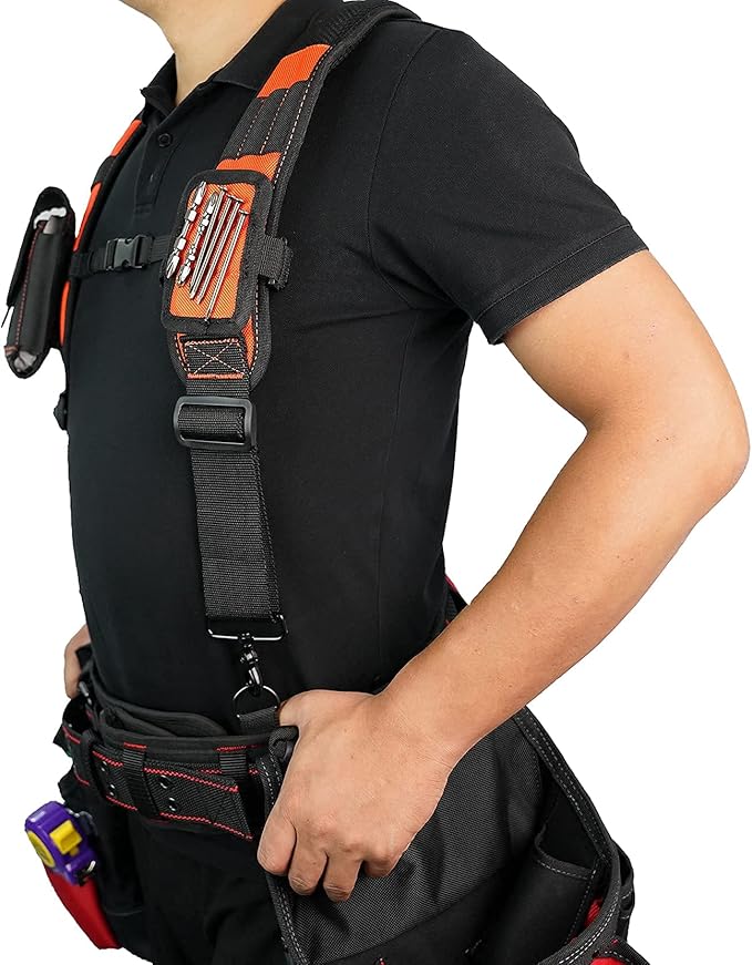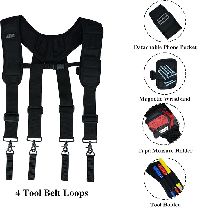 🛠Tool Belt Harness -- If you want to replace your old one tool belt suspender , this one is your perfect choose .If you feel back pain and tool belt with heavy weight pouch , you need take this one with no regretful .