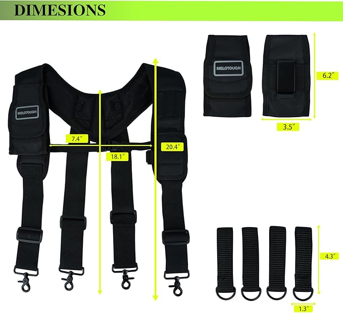 👷Tool Belt Suspender for constructor/ farmer / carpenter --Extreme Comfort and 4 point Support Design for your Tool belt,Large Detachable Phone Holder , Pencil holder , tape measure webbing holder make your job more easy