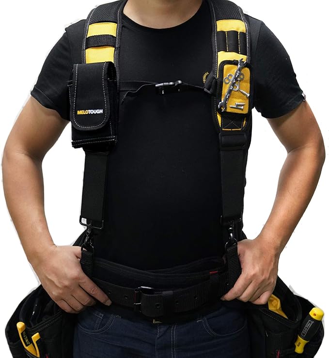 🛠️Tool Belt Harness -- If you want to replace your old one tool belt suspender , this one is your perfect choose .If you feel back pain and tool belt with heavy weight pouch , you need take this one with no regretful .