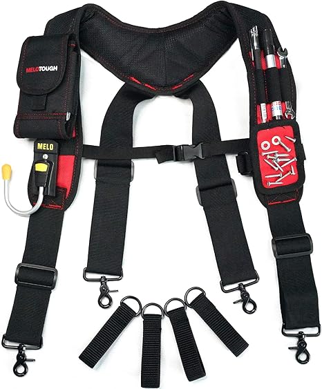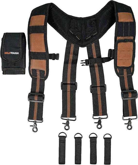 Attention : the product listing only included one tool belt suspender , 4 pcs loop , 1 phone case , 1 magnetic pad(Not including tool hook) If you want to buy the MeloTough drill hook as the picture. ;