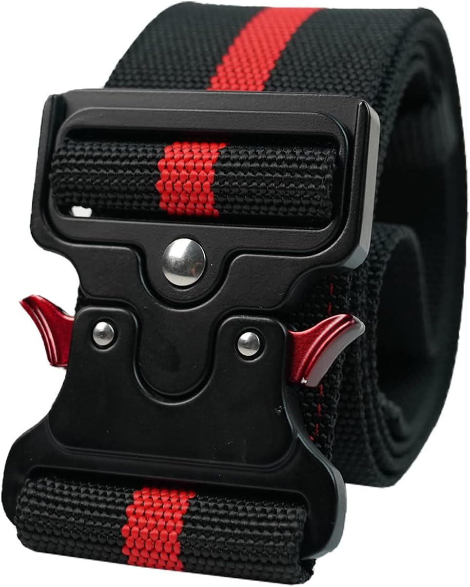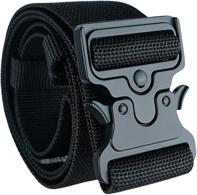Quick Release Belt Buckle:Intuitive and smooth quick release function when you press down the golden tabs simultaneously. If only one tab is engaged, the connection still holds and locks completely by itself. Once tightened, the belt does not slip, stays in place, comfortable and is easy to close and open. -