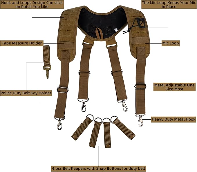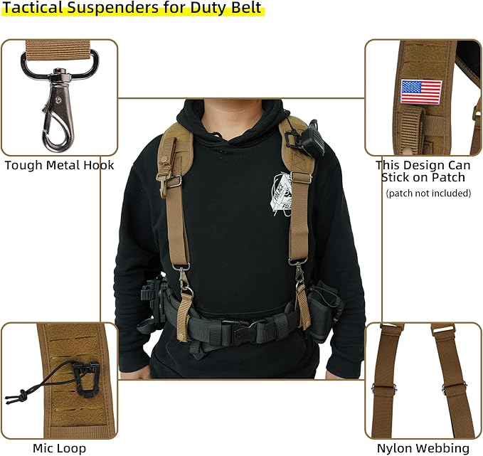 ✓Good back support for Duty Belt Suspenders---a wide four-point support for comfort and the underside is a Paded material to keep the wearer cooler