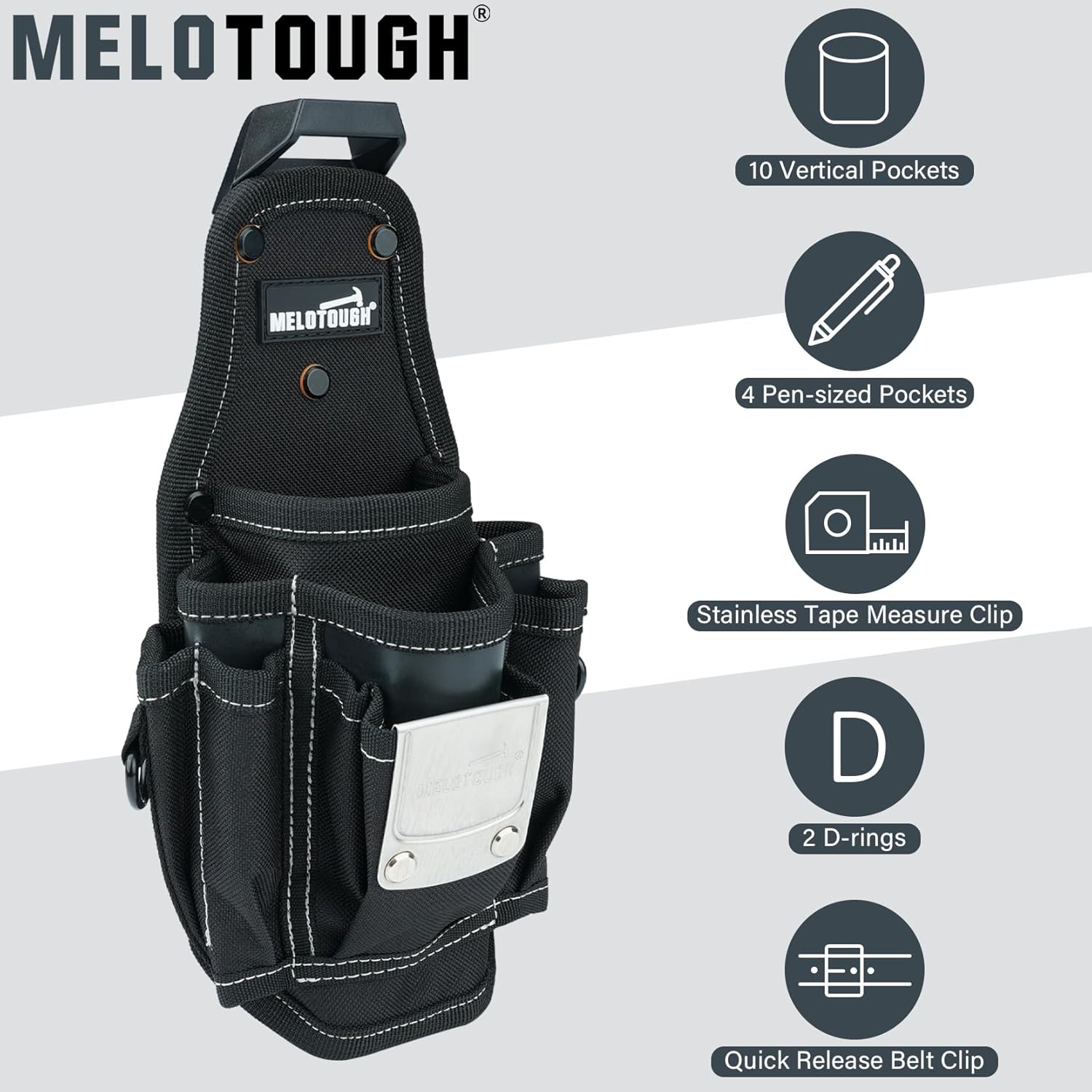 MELOTOUGH Pocket Tool Belt Pouch-Small Tool Pouch with Quick Release Belt Clip,Clip on Larger Pockets & Loop, Clip on-Tool Holder Accessory