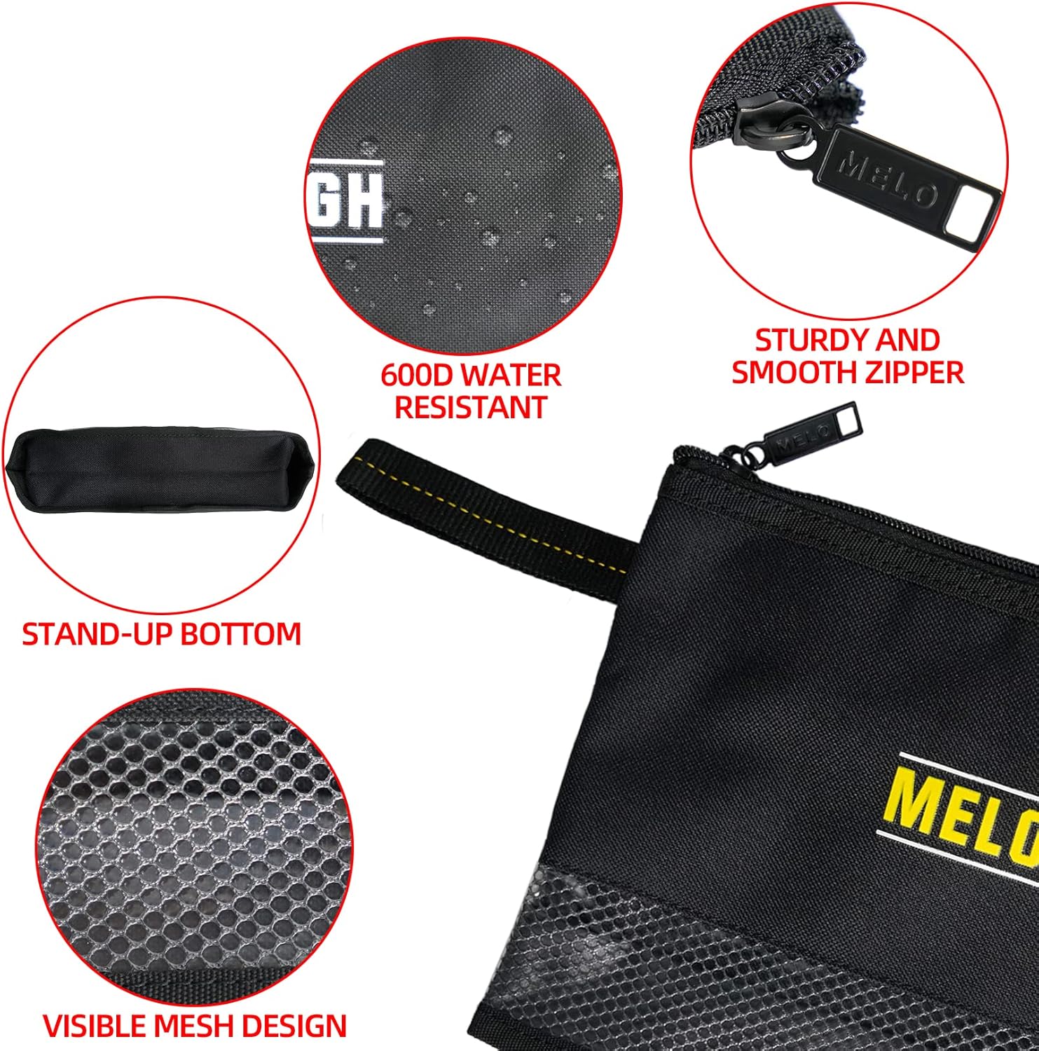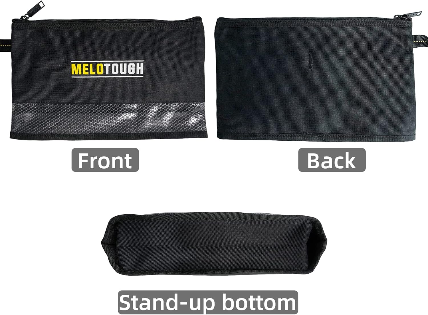 🔩️STAND-UP TOOL POUCH ZIPPER BAG : Stand up bottom design increases the stability of the small zipper tool bag and makes it easy to access the items inside the zippered pouch; half transparent at bottomm and colored interior to see items better.