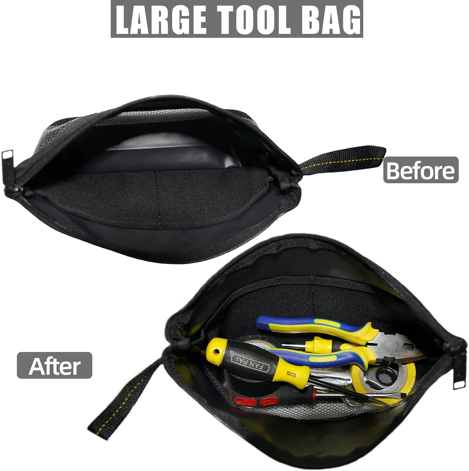 🔩HIGH QUALITY SMALL TOOL POUCHES : Zipper tool bag is made of 600 ballistic material that is strong durable, not easy to break and water resistant; sturdy zipper slides smoothly and won't stuck.