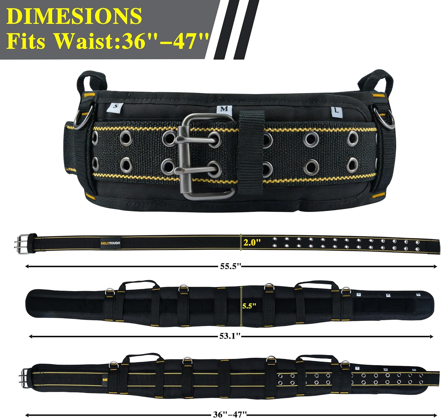 MELOTOUGH Padded Tool Belt with handle strap Construction Work Belt with D ring to hook with Tool Belt Suspenders(Tool Belt Suspenders not Included