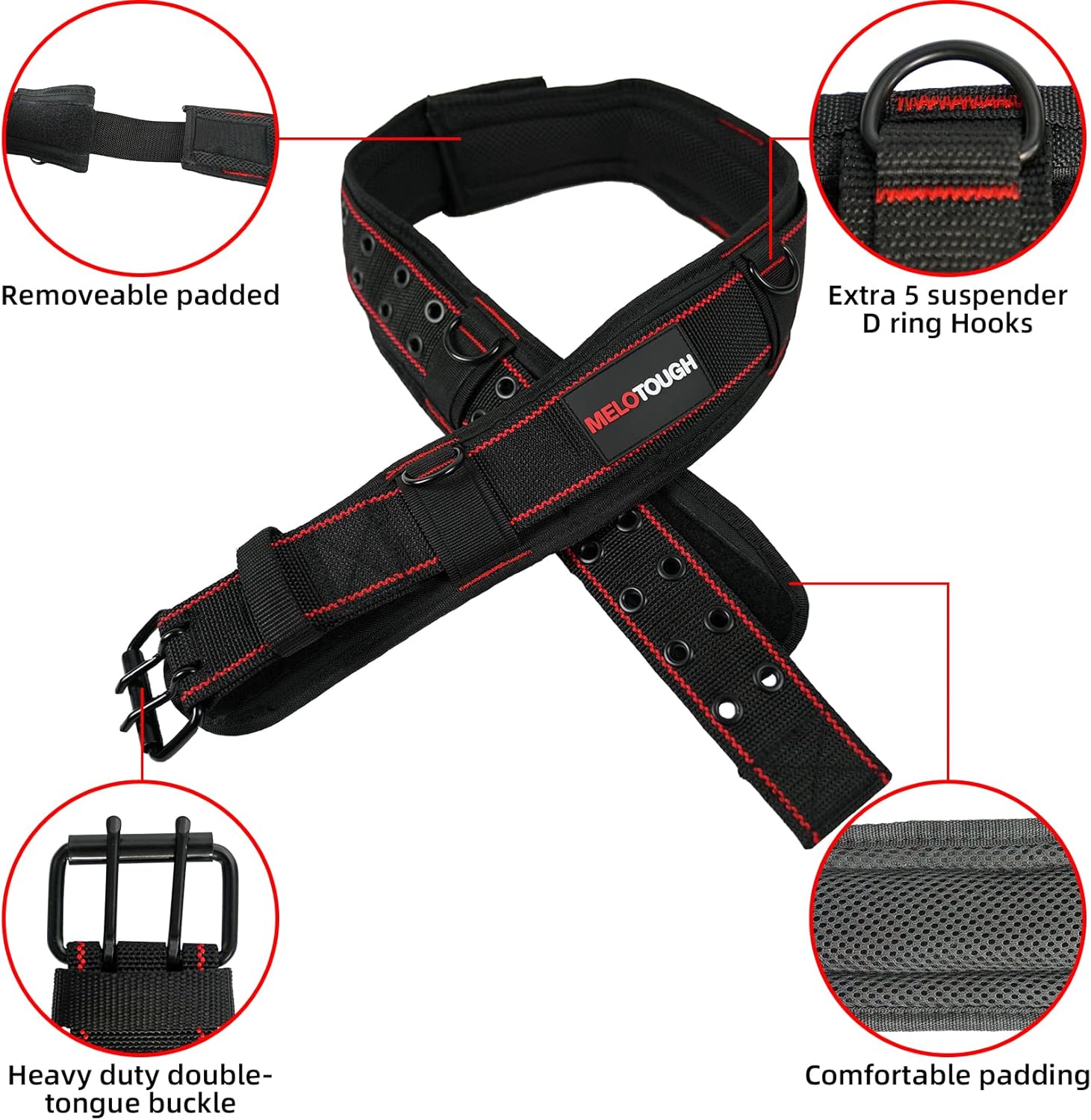 MELOTOUGH Padded Tool Belt with D ring for men construction Strong Durable Double Metal Roller Buckle,adjustable waist 33'-47 'thick confortable foam padding (XL)