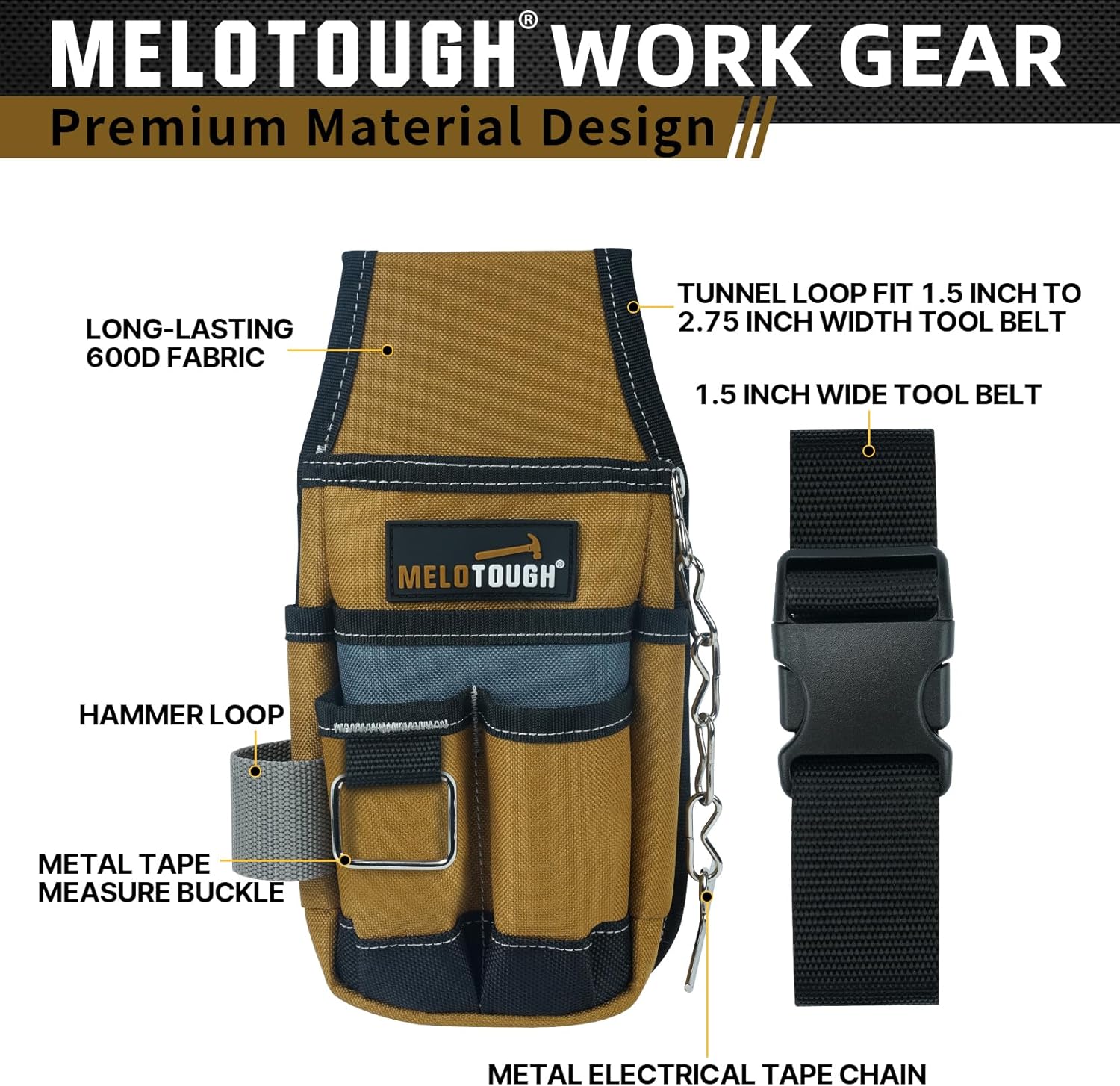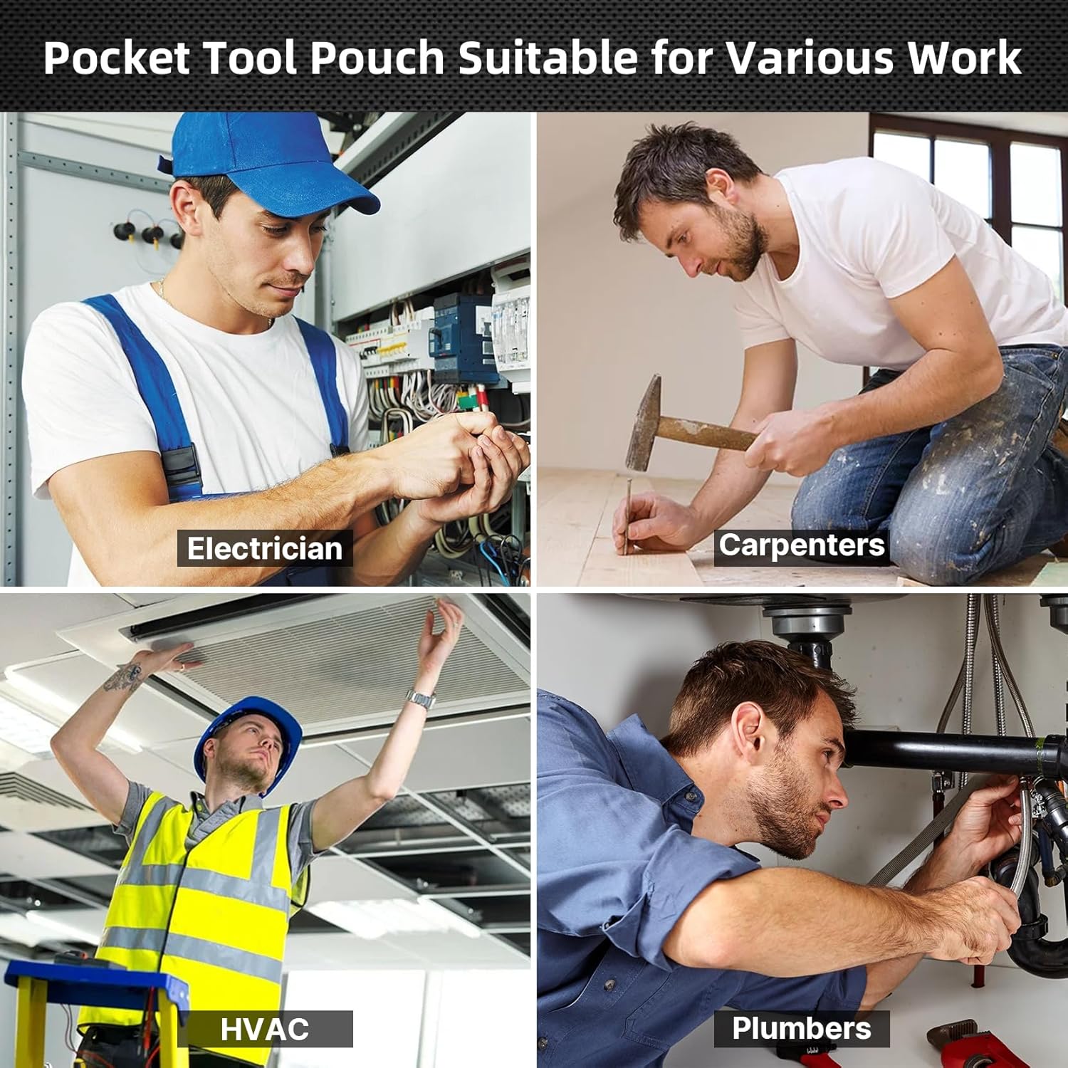 - LONG-LASTING ELECTRICIAN TOOL POUCH : Made of 600D water - resistant fabric including reinforced PE bottom panel, which improves the durability of the tool pocket pouch for extended use and wear