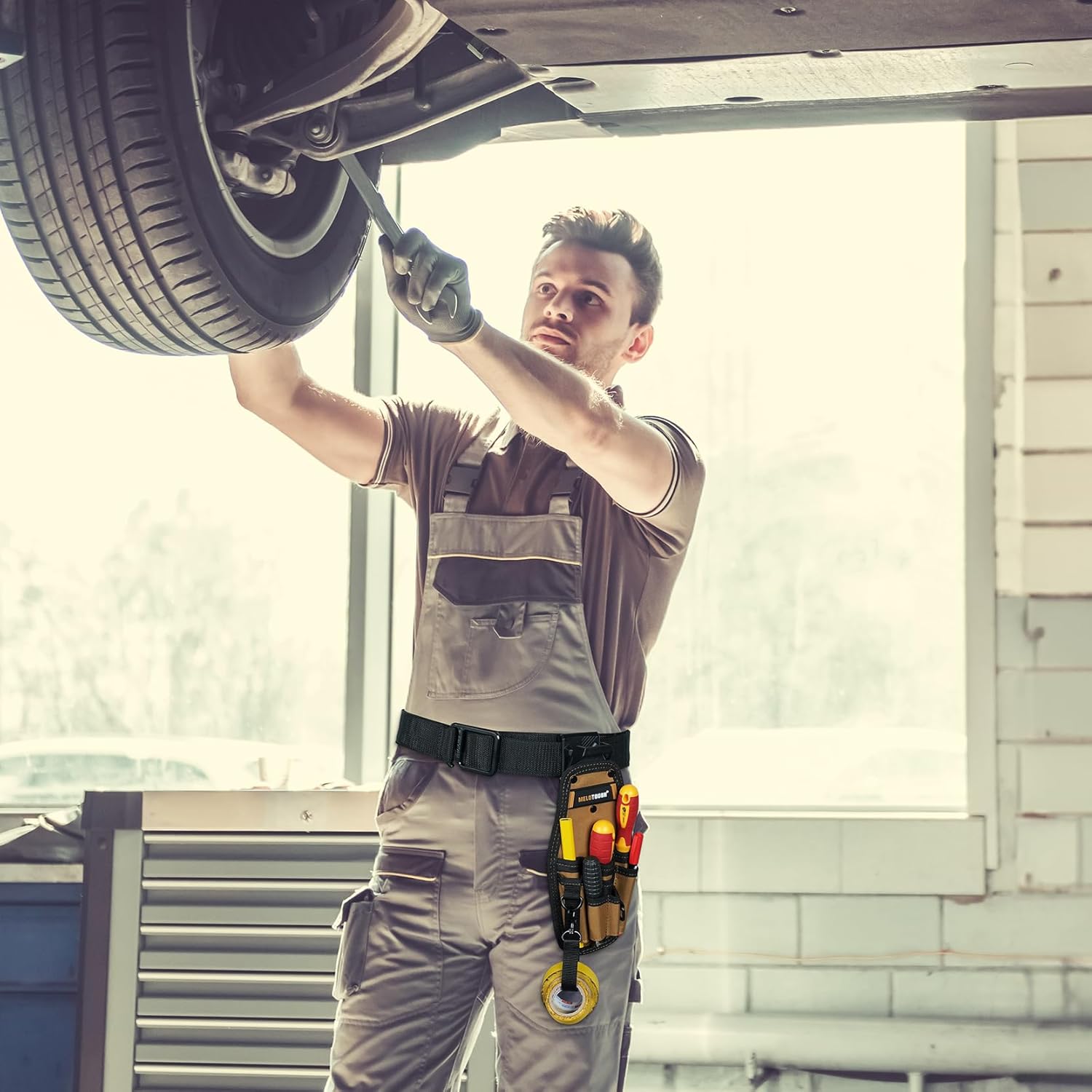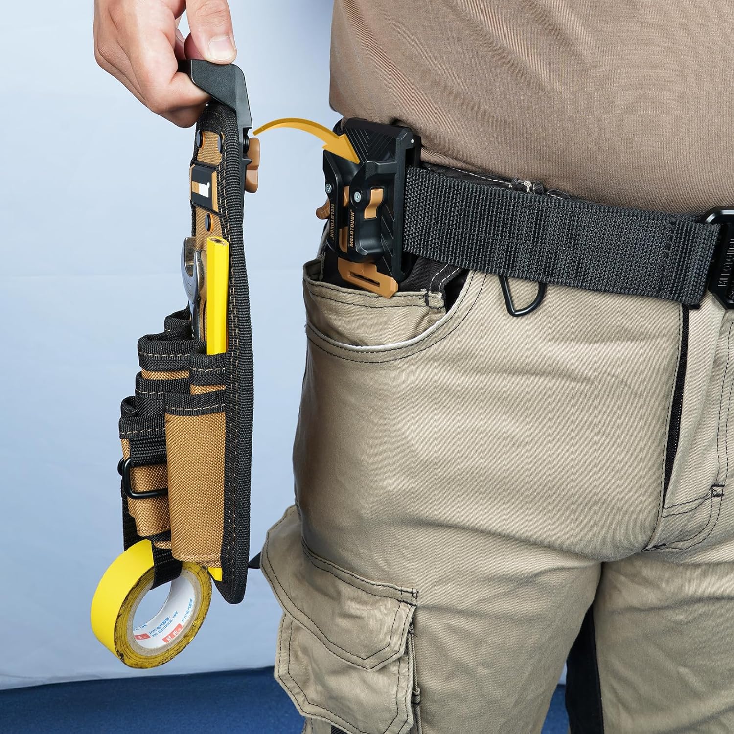 MELOTOUGH Small Tool Pouch with Quick Release Belt Clip,Tool Belt Pouch Mini Work Organizer with Tape Thong Strap