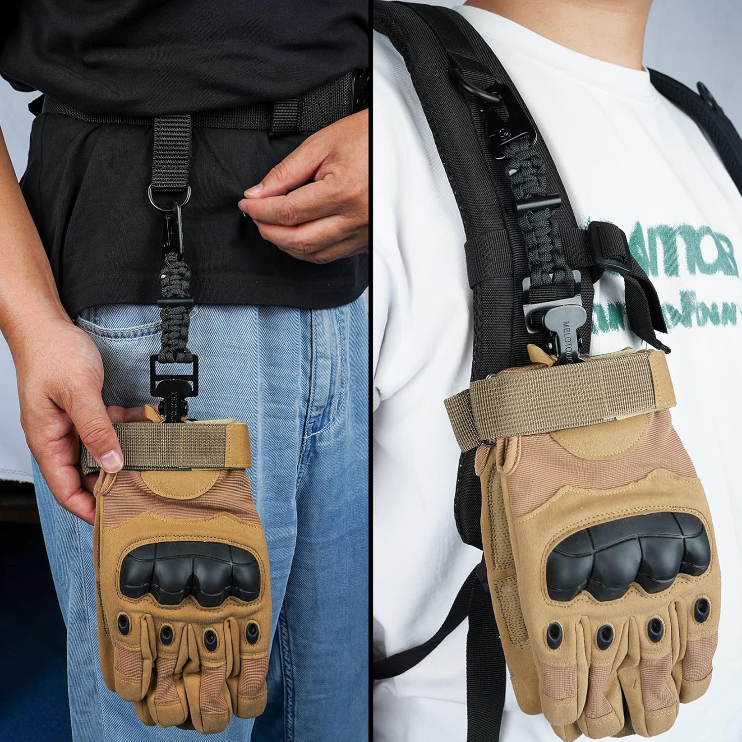 【TGH01-Black】MELOTOUGH Tactical Glove Clip Holder Work Glove Holder Clip for Tactical Backpack, Tool Belt