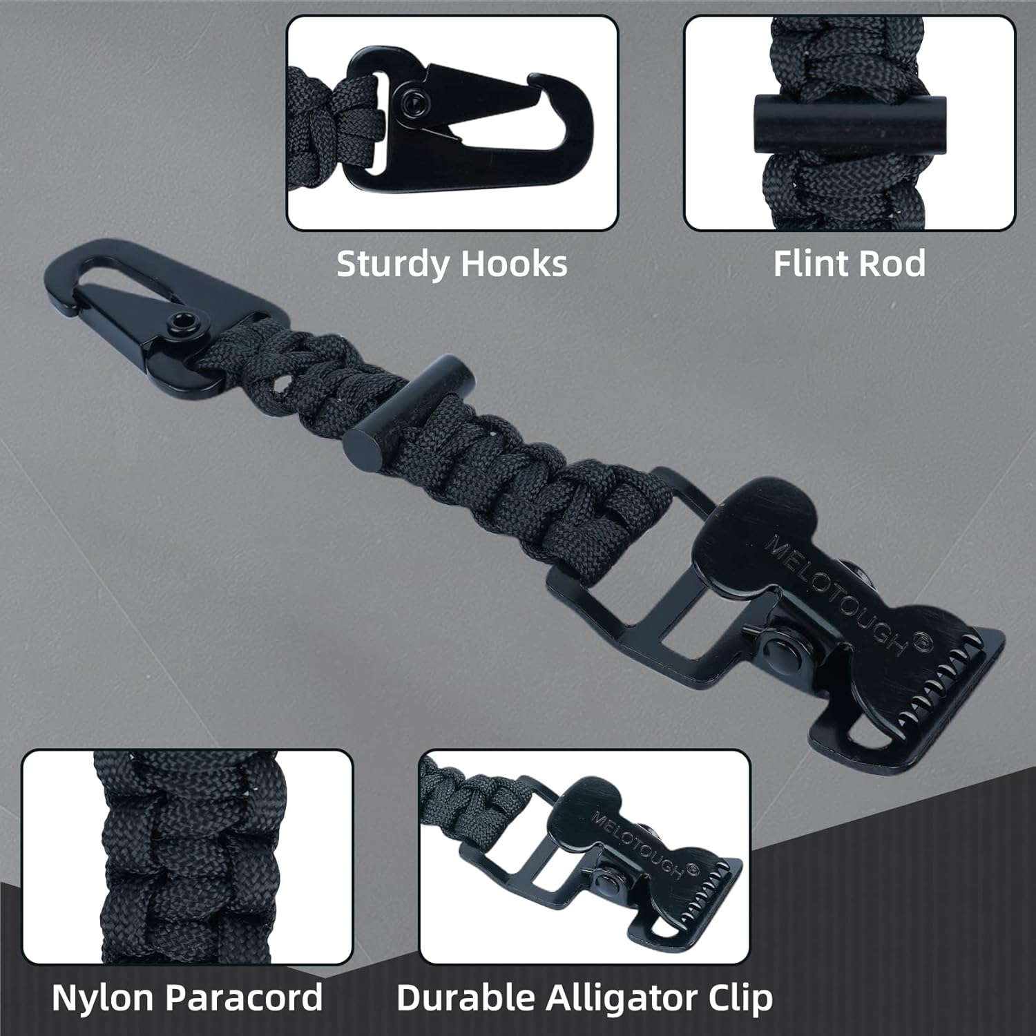 BRAIDED PARACORD STRAP : Hand-woven nylon paracord glove clip holder with fire starter, heavy-duty metal alligator clip and metal hook, not easy to rust and fade and break, can be used with confidence. -