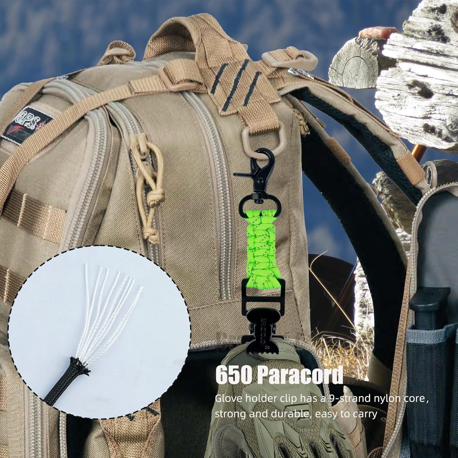 ⚙️HIGH QUALITY BRAIDED PARACORD STRAP : Hand-woven nylon paracord glove clip holder , heavy-duty metal alligator clip and metal hook, not easy to rust and fade and break, can be used with confidence.