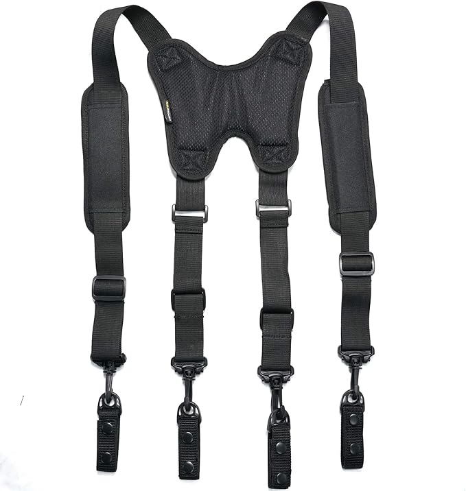 A pair of duty belt suspenders help the waist weight off and your low back pain released