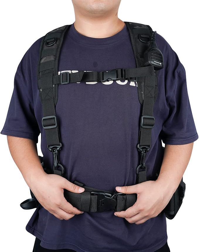 MELOTOUGH Tactical Outdoor H-Harness Duty Belt Suspenders Black