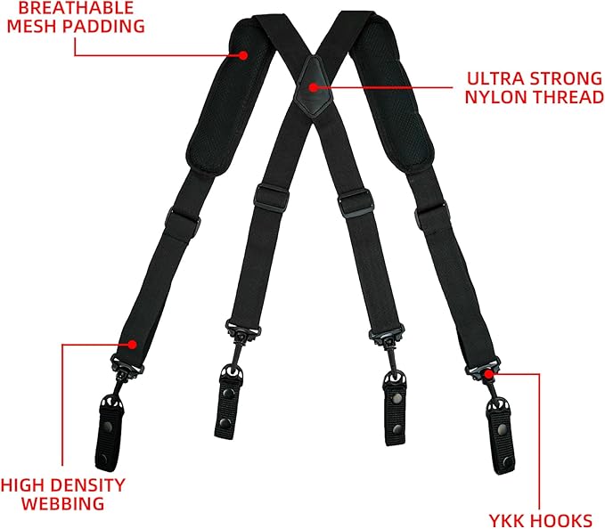 Tactical Suspenders -New designed to distribute weight of duty belt over shoulders, taking weight off hips and lower back