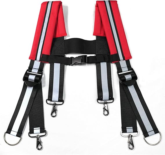 - Safety Work Suspenders ---Padded Shoulder Strap with Reflective Strip, you can help your tool suspender easily and make you visible at night and dark rig support